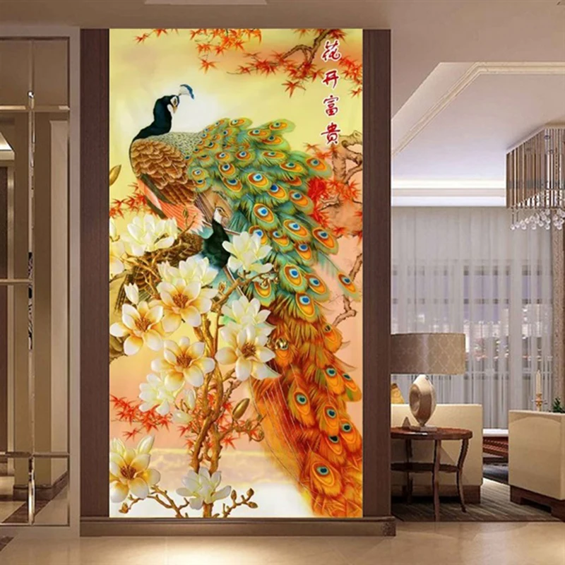 Павлин Магнолия вертикальная версия 11CT печатных вышивки крестом Наборы для вышивания цветочным принтом в стиле сделай сам украшения дома картины