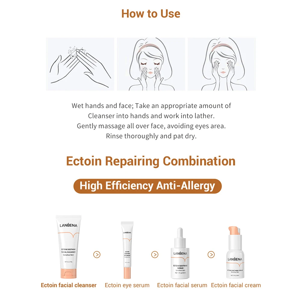Очищающая пенка для лица LANBENA, Питательная, с эктоином, Антиаллергенная, питание для кожи увлажнение