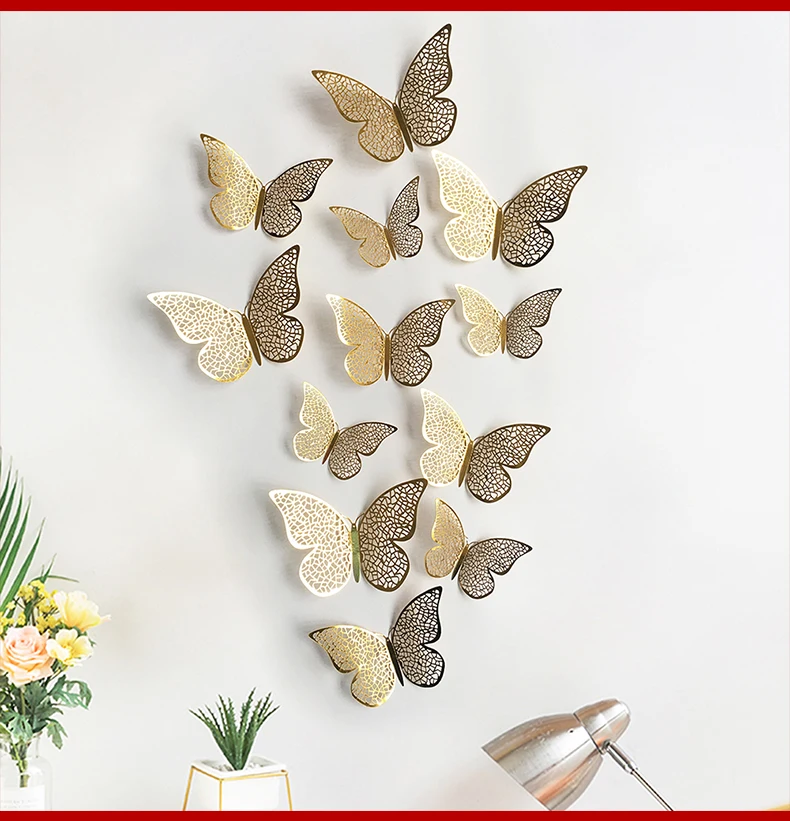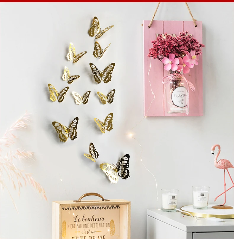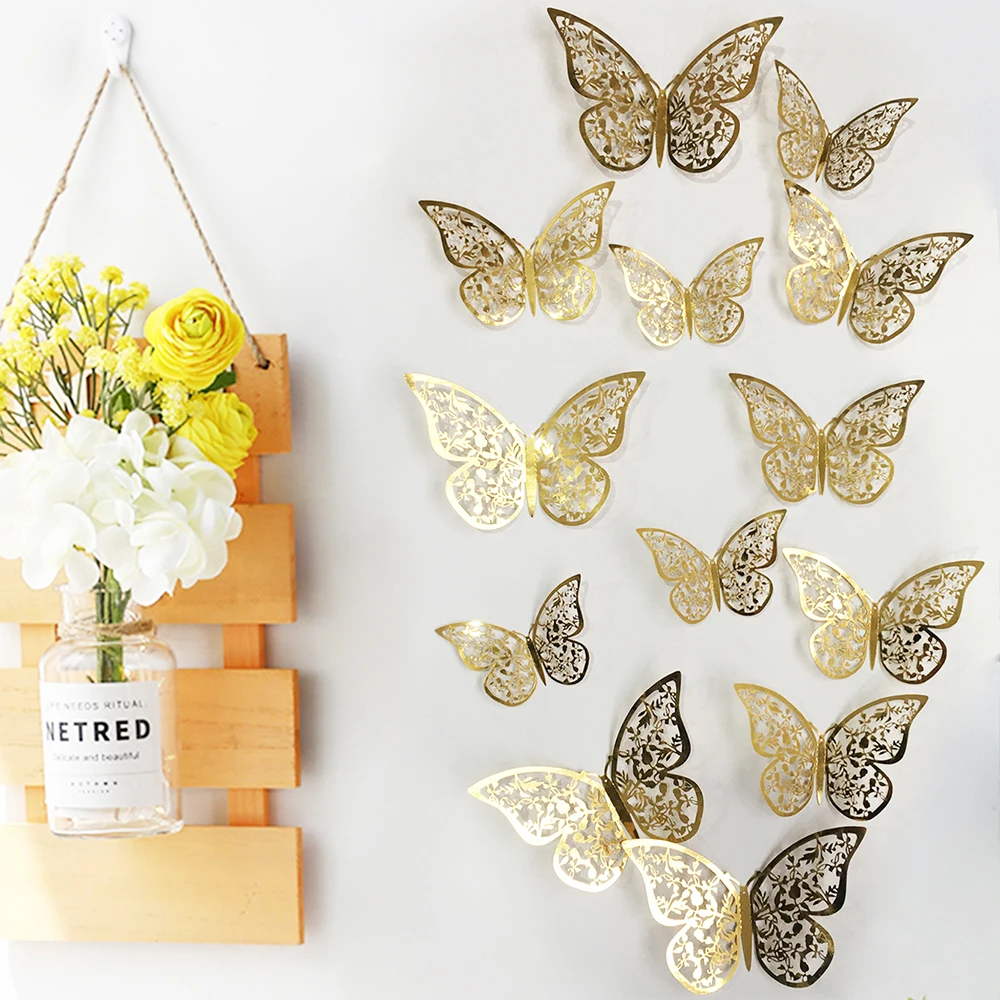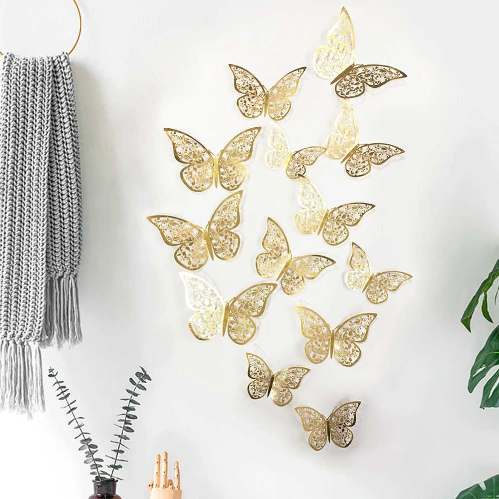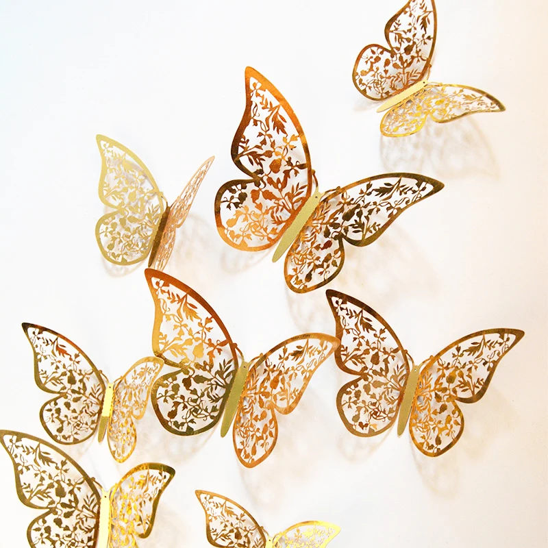 12 шт сверхъестественное декоративные наклейки на холодильник бабочки, стену для . комнаты, 3D декор, свадебные украшения гостиной в эстетике, самоклеящиеся панели детской домашний d panel self adhesive