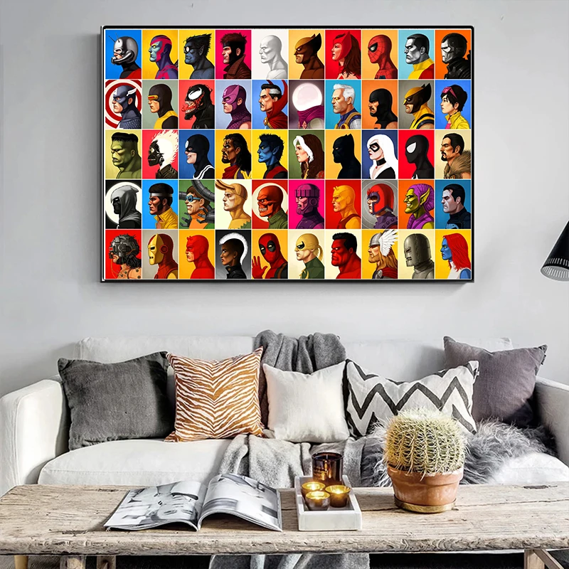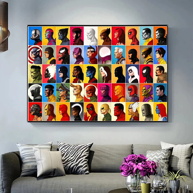 Марвел, супергерой плакат Мстителей, большой набор головок, холст, ...