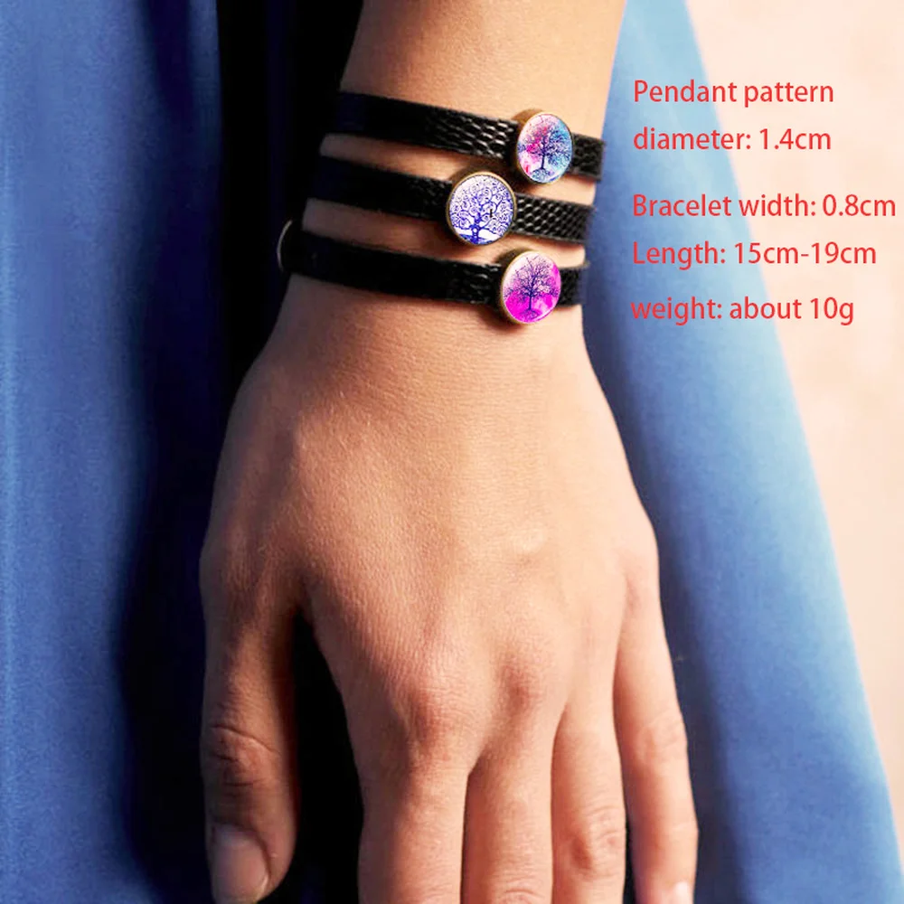 Новый кожаный браслет Дерево жизни стеклянный выпуклый купол Ретро время драгоценный камень Дерево жизни простой кожаный браслет для женщин ювелирные изделия