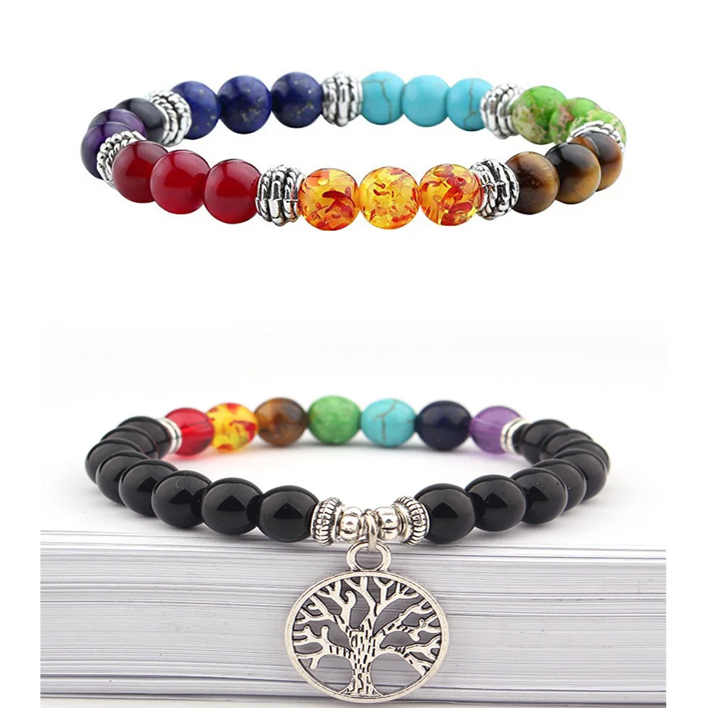 Натуральный камень 7 энергия чакры Будда браслет из тигрового глаза камень Lapis бисером дерево жизни кулон красочный браслет для женщин