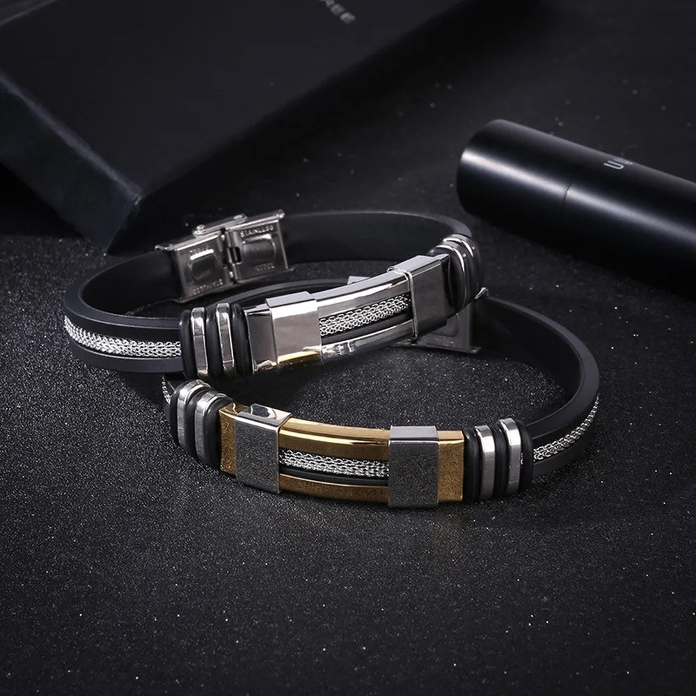 2021 Горячая Распродажа, модный браслет из титановой стали, новые ювелирные изделия, повседневный силиконовый браслет из нержавеющей стали, черный мужской кожаный браслет