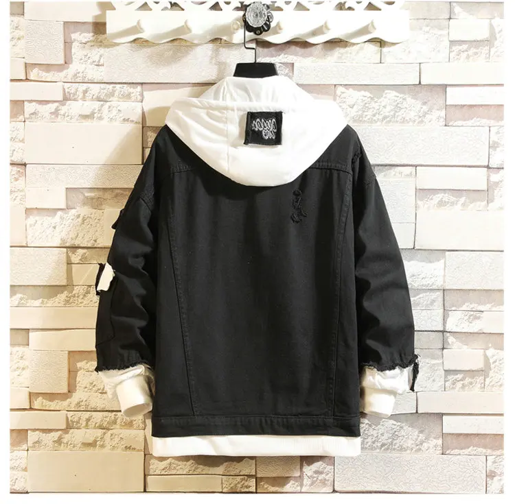 Куртка мужская джинсовая приталенная, рваная джинсовая куртка с капюшоном, бомбер в стиле хип-хоп, одежда для улицы, осень, 2020
