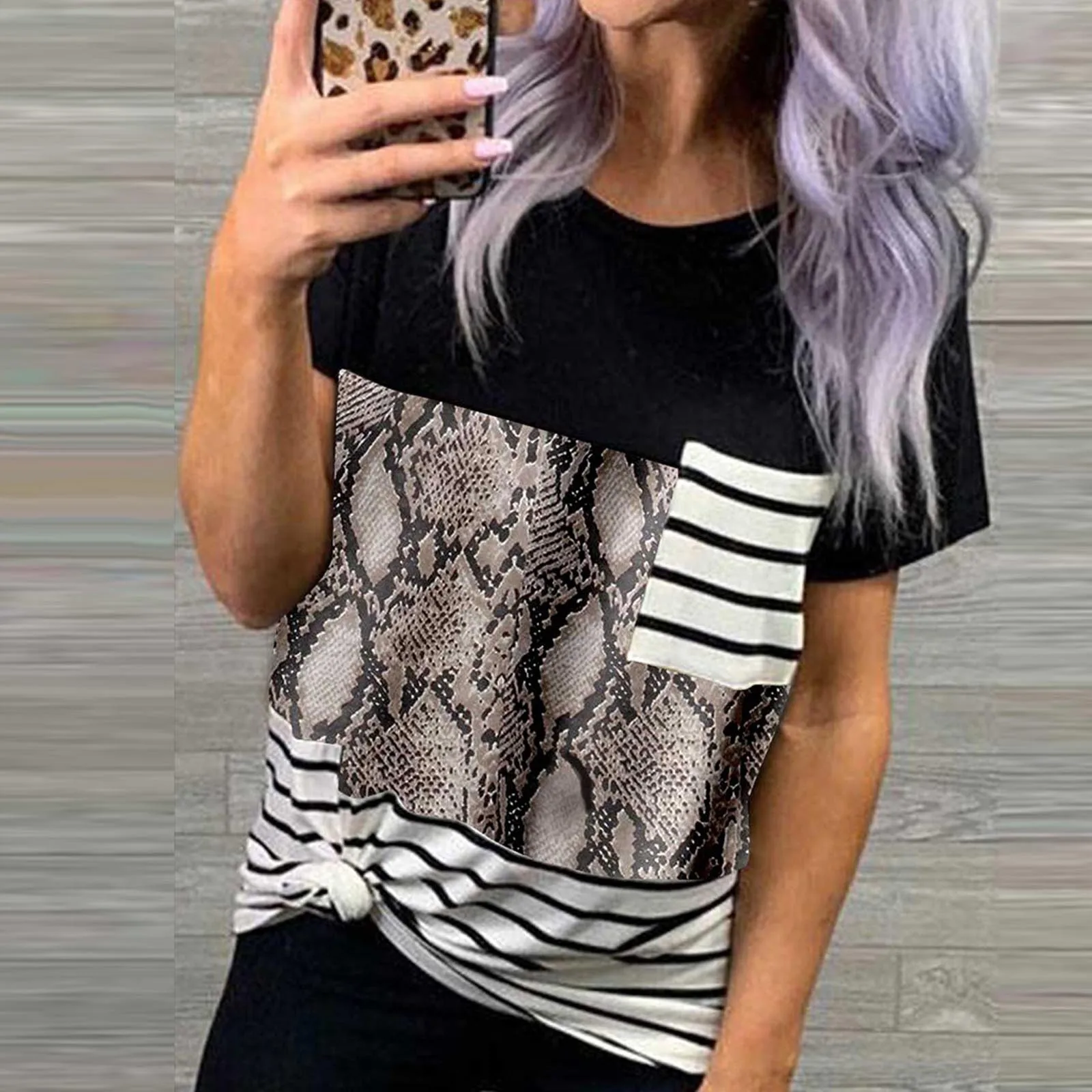 Футболка женская с принтом змеиной кожи, модный пикантный Топ в стиле Харадзюку, с круглым вырезом и коротким рукавом, Повседневная рубашка