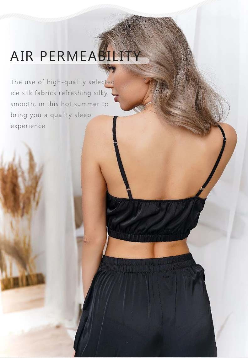 Пижама EV RE женская с V-образным вырезом, укороченный топ на бретелях-спагетти, однотонная, пижама с брюками, комплект из 2 предметов