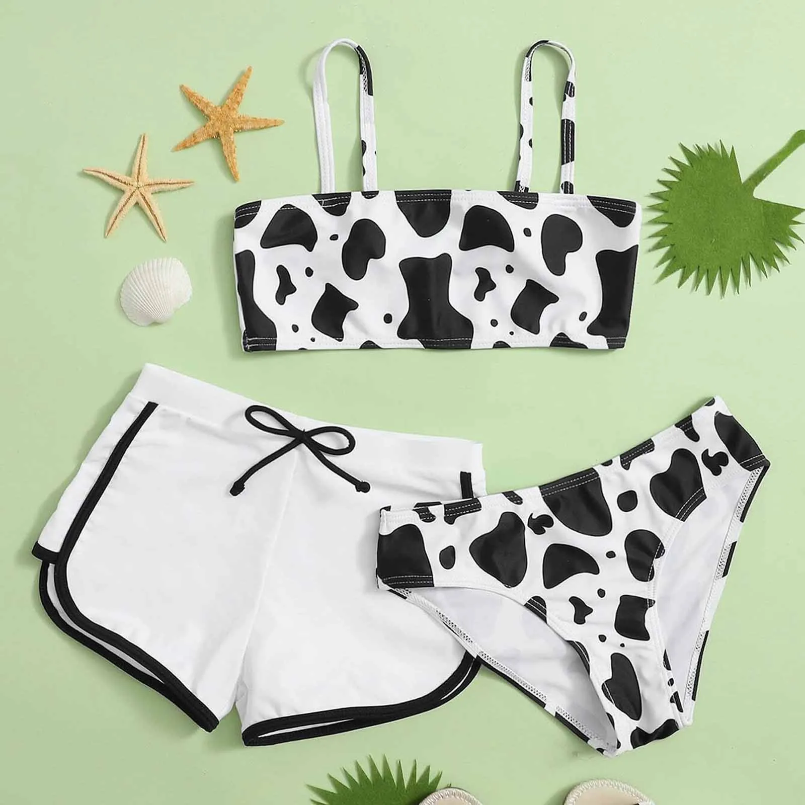 Летнее платье с узором милый крест-накрест обратно коровьей Цветочный принт, комплект из трех предметов, летний купальник, купальная одежда и плавательные Мужские Шорты для купания traje de bano