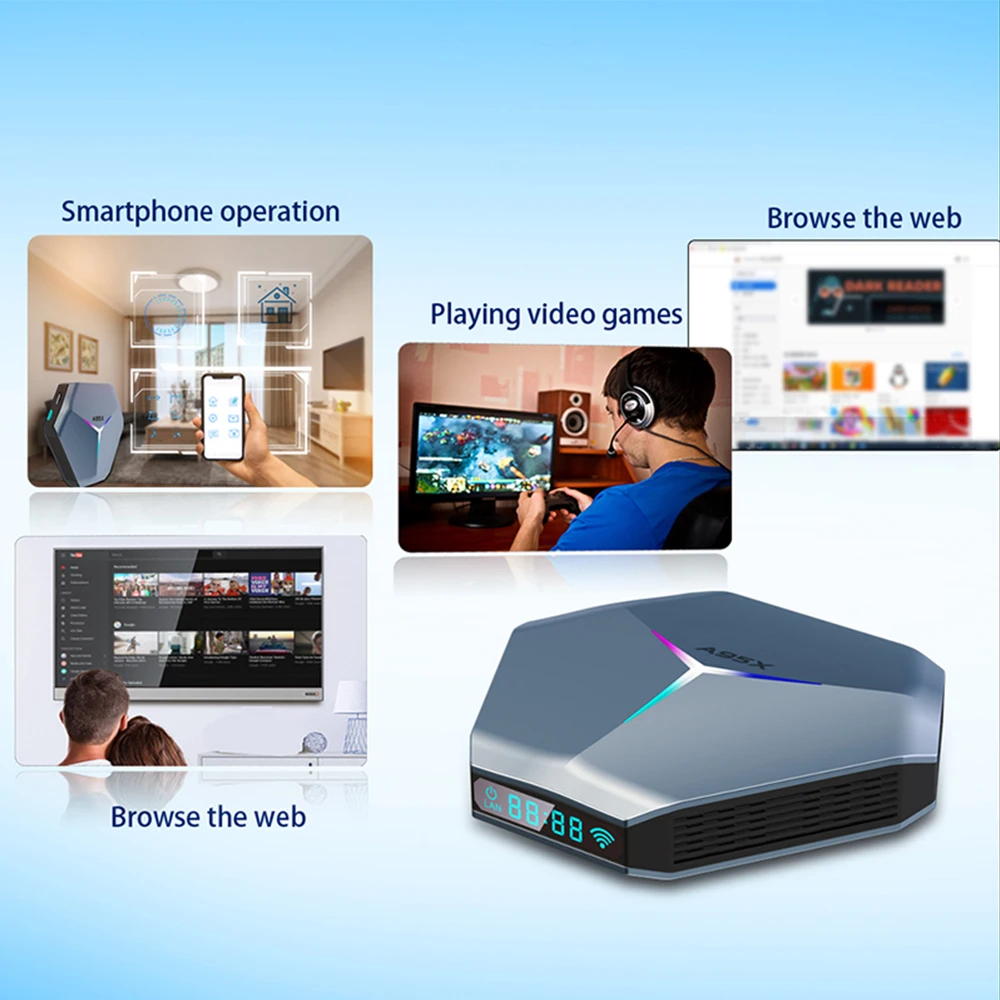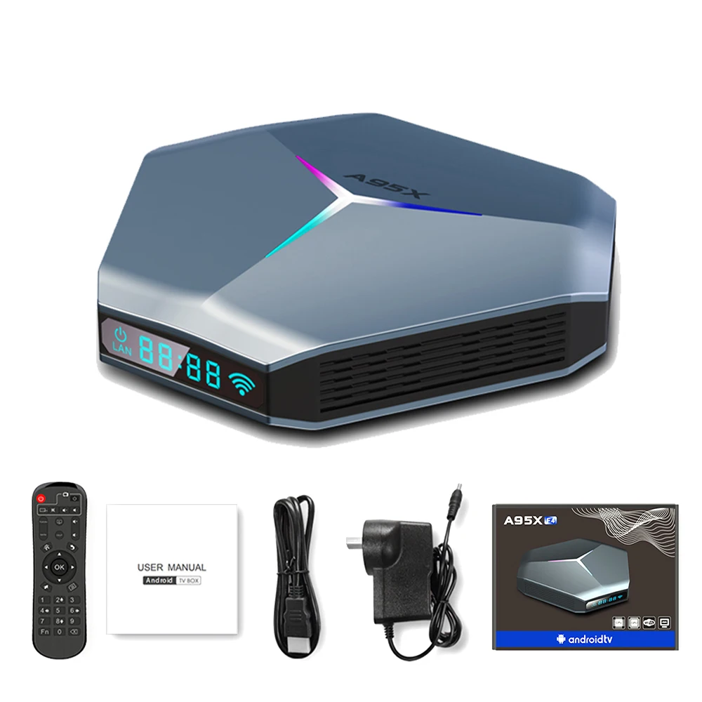 Приставка Смарт-ТВ A95X F4 2,4G5G WiFi четырехъядерный USEU 8K RGB светильник 24G медиаплеер для Android 10 S905X4 163264128G