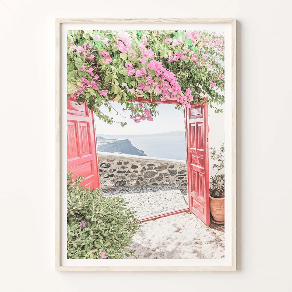 Печать в Санторини, Греция Цветы Современные фрески Мгновенные загрузки Греческая архитектура Терракотовые воины