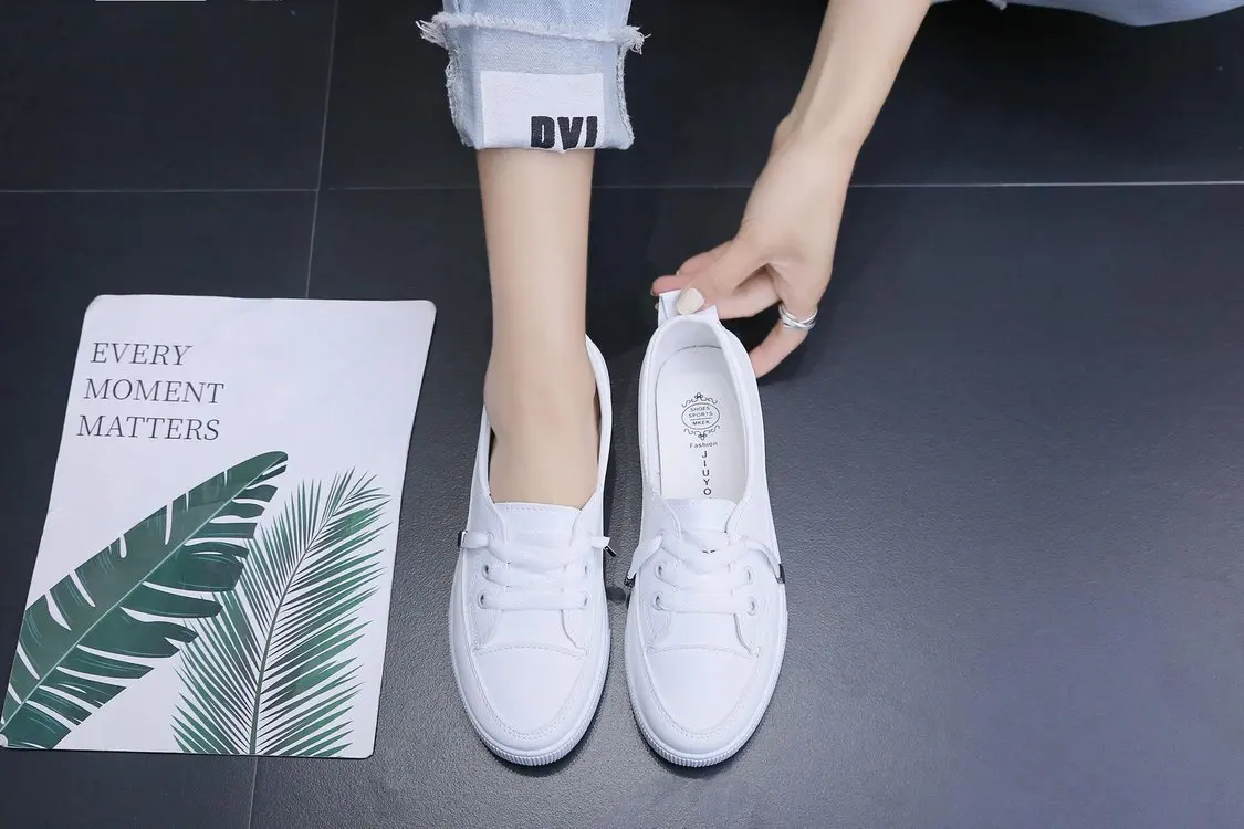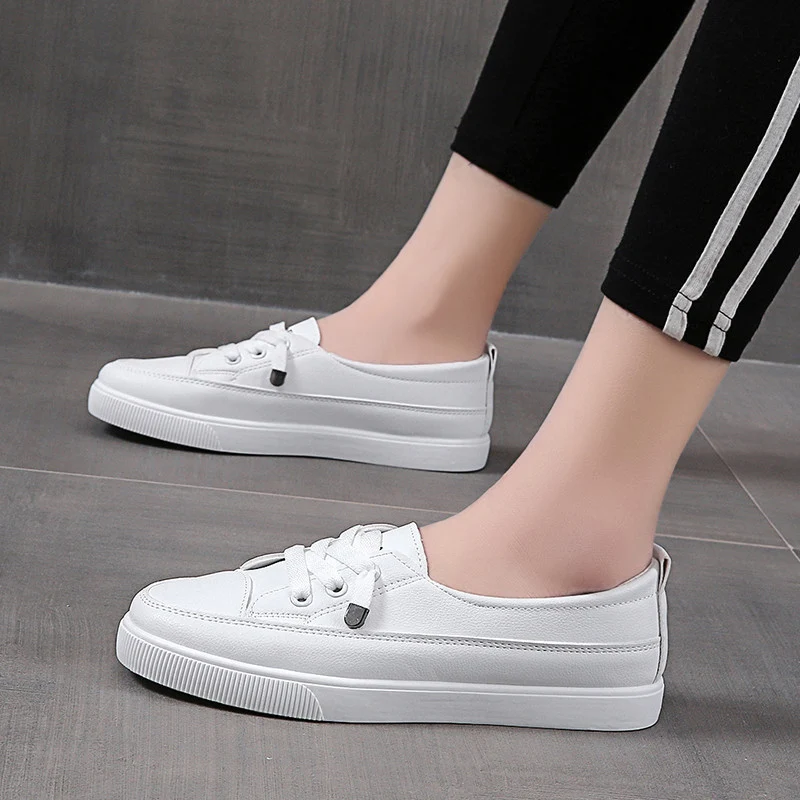 2021 낮은 플랫폼 스니커즈 여성 신발 여성 PU 가죽 워킹 스니커즈 로퍼 화이트 플랫 슬립 온 из вулканизированной резины 캐주얼 신발