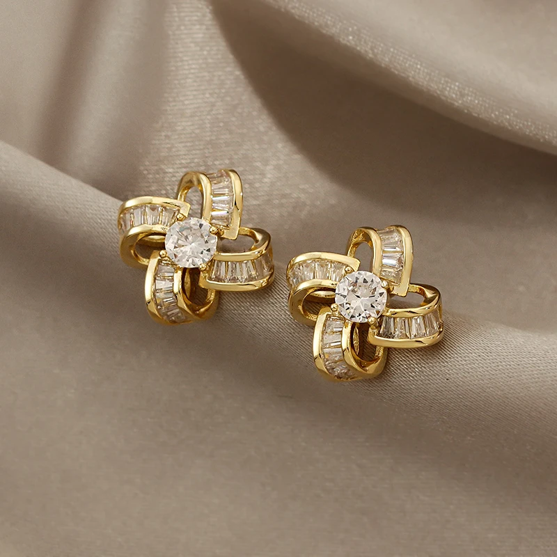 Дизайн Sense, маленькие серьги из в форме ветряной мельницы циркона и золота для женщин, корейские модные украшения, свадебные аксессуары для девочек