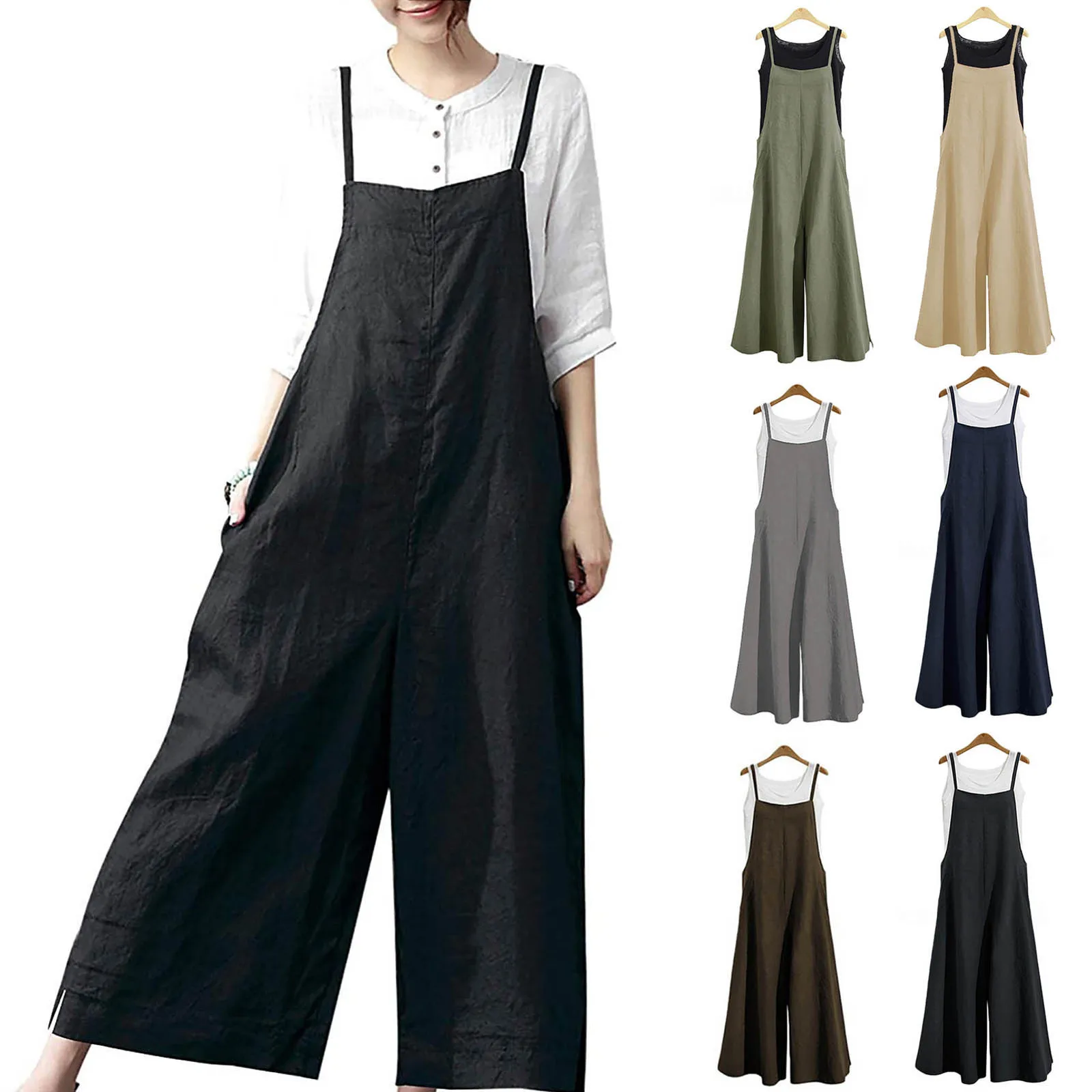 Женские туфли с ремешком Комбинезон Свободного Покроя Лето Повседневные широкие брюки с широкими штанинами сплошной комбинезон широкие брюки на подтяжках без рукавов больших размеров из хлопка и льна