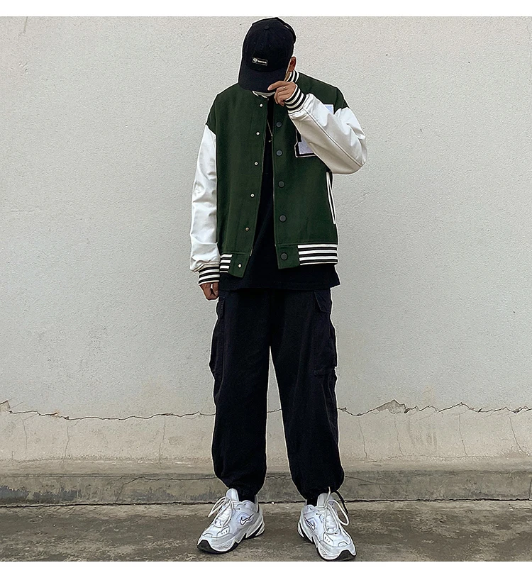 Бейсбольная куртка в стиле хип-хоп для мужчин и женщин, кожаная кур...