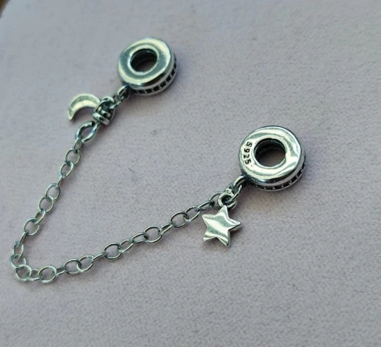 Эта цепочка меня расстроила. Было написано, что это стоппер- то есть должен предотвращать рассыпание бусин в случае расстегивания. Надеваться на концы браслета, и благодаря зубчикам внутри колец, держаться там. Но по итогу это просто подвеска на браслет. Да, она прикольная и красивая. Но свою прямую функцию не выполняет. Я ее и заказала только потому, что на работе у меня расстегнулся браслет (я не заметила этого), и я его потеряла. На следующий день нашла на информационной доске, но без одной бусины, которую я по итогу найти не смогла. А браслет с подвесками серебряный, подарок от папы. Так что очень обидно(