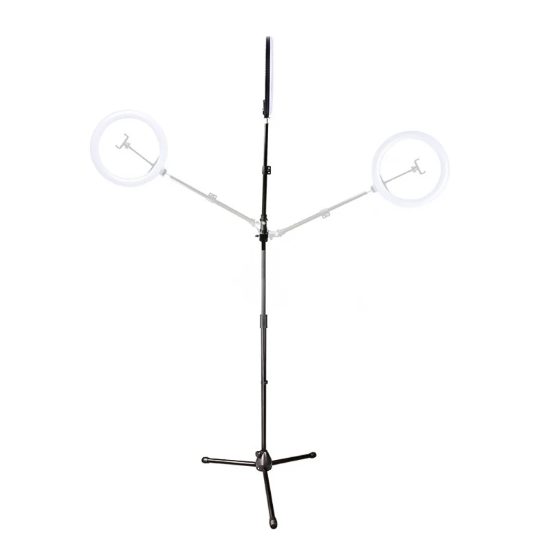 Светодиоды, в зависимости от выбранного режима (3 основных режима подсветки), осветят ваше лицо мягко и аккуратно, либо подарят студийную подсветку, или же дадут освещение, подобное ярким софитам. Стойка имеет складную конструкцию с дополнительной стрелой (плечом), длина которой равна 45 см. Стрела закреплена на поворотном шарнире.