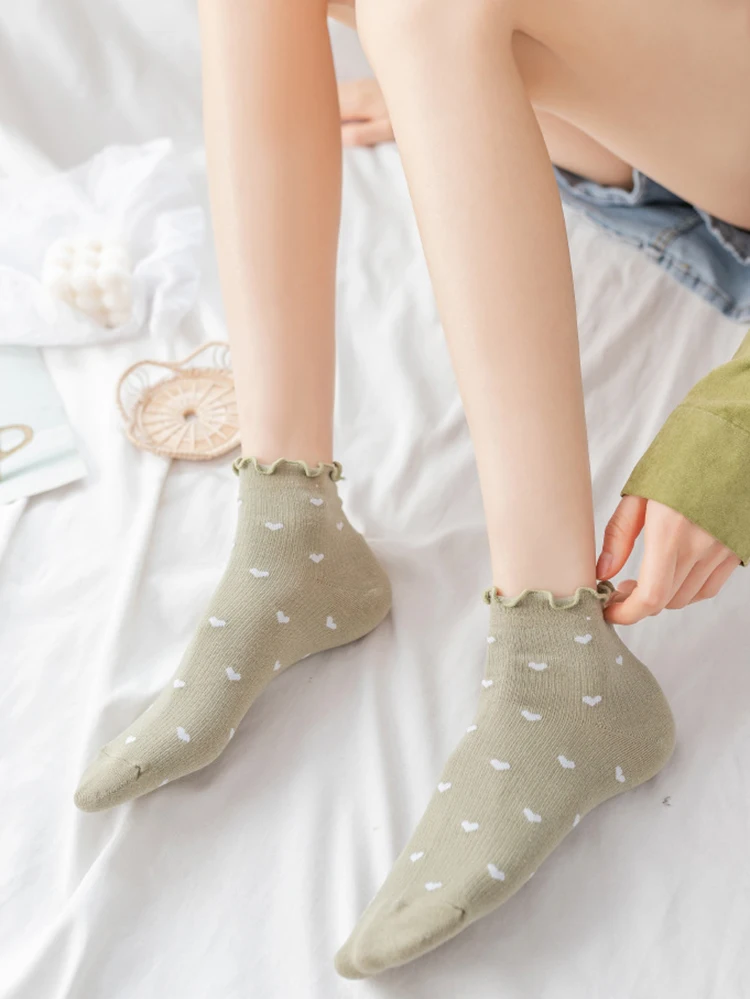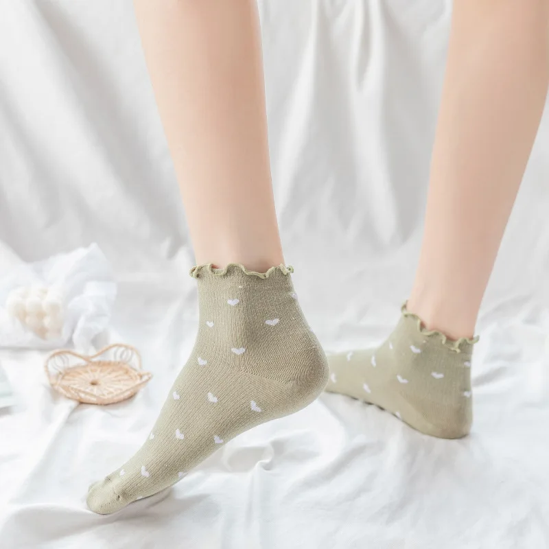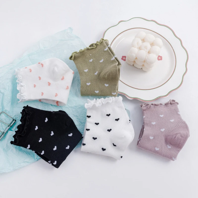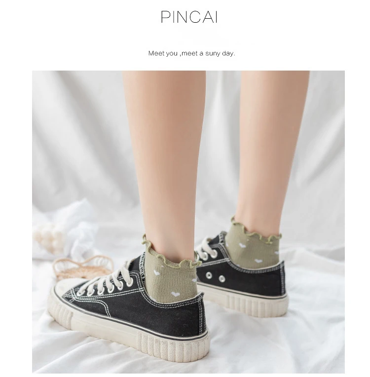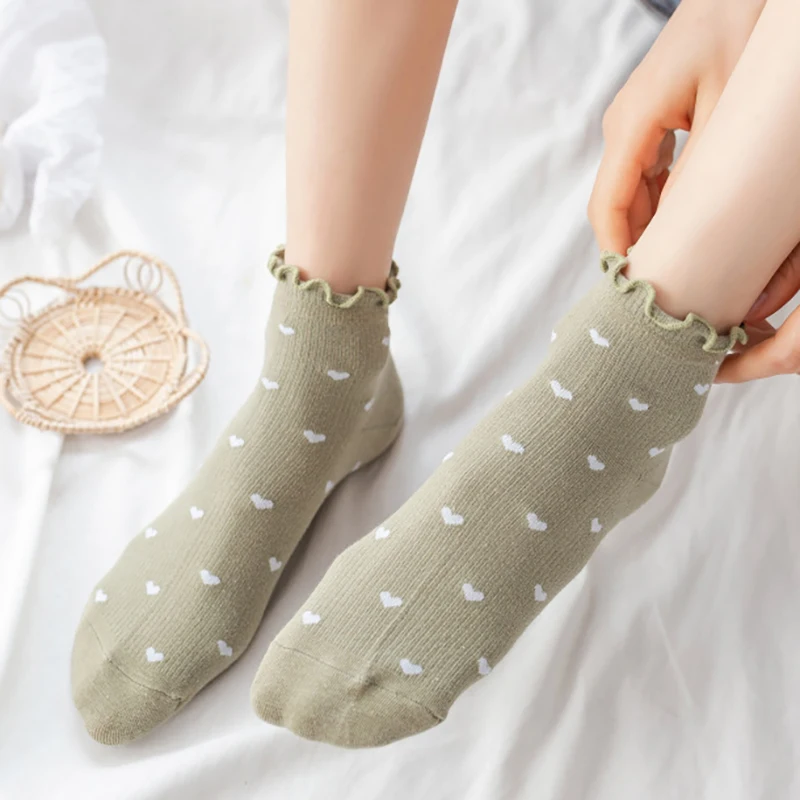Женские носки с оборками и принтом love, милые уличные стильные хлопковые носки в японском стиле, женские носки в стиле Харадзюку