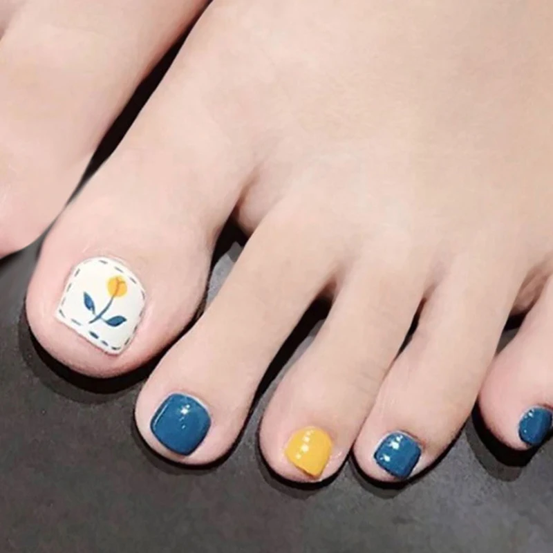 24 шт. Пресс для ногтей, для нанесения с помощью клея короткие накладные ногти для пальцев ног, полного покрытия, Пресс на ногти поддельные ногти искусственные ногти на ногах для Для женщин девочек DL