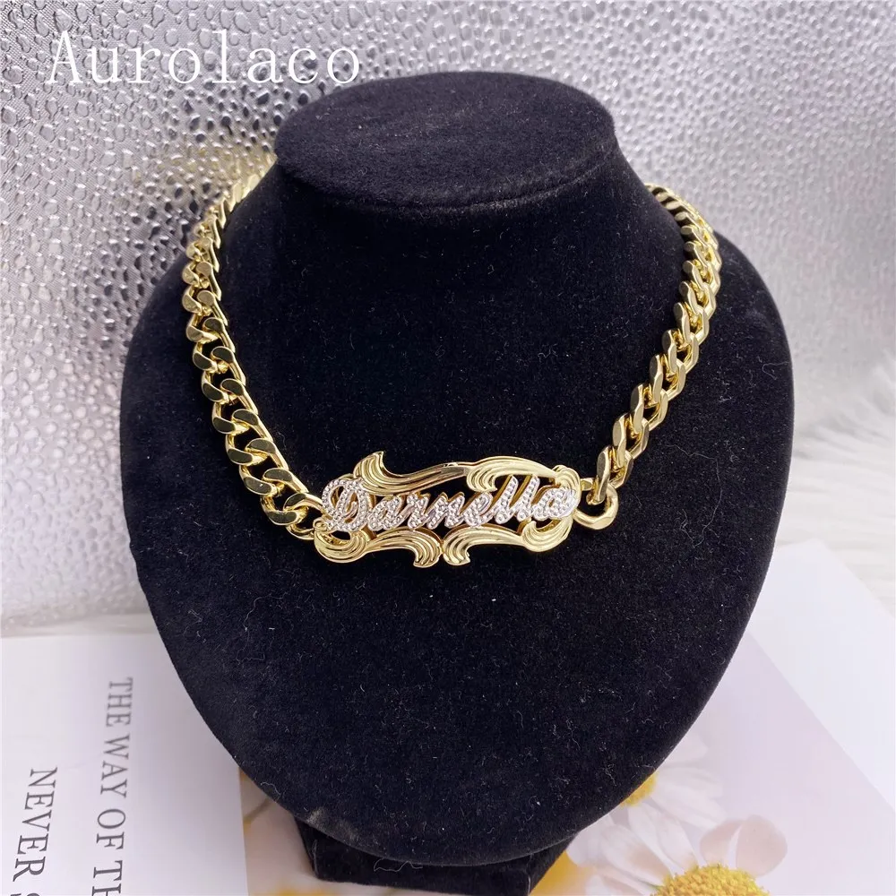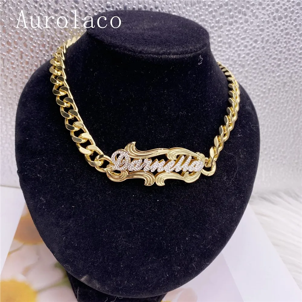 AurolaCo Новое хип-хоп ожерелье с именем на заказ индивидуальное ож...