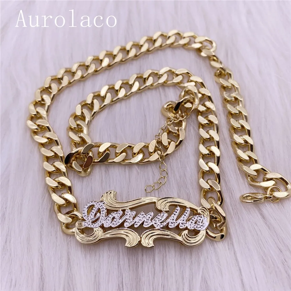 Двойные именные браслеты AurolaCo, двухтонированный именной браслет из нержавеющей стали, кубинский браслет-цепочка для женщин, подарки