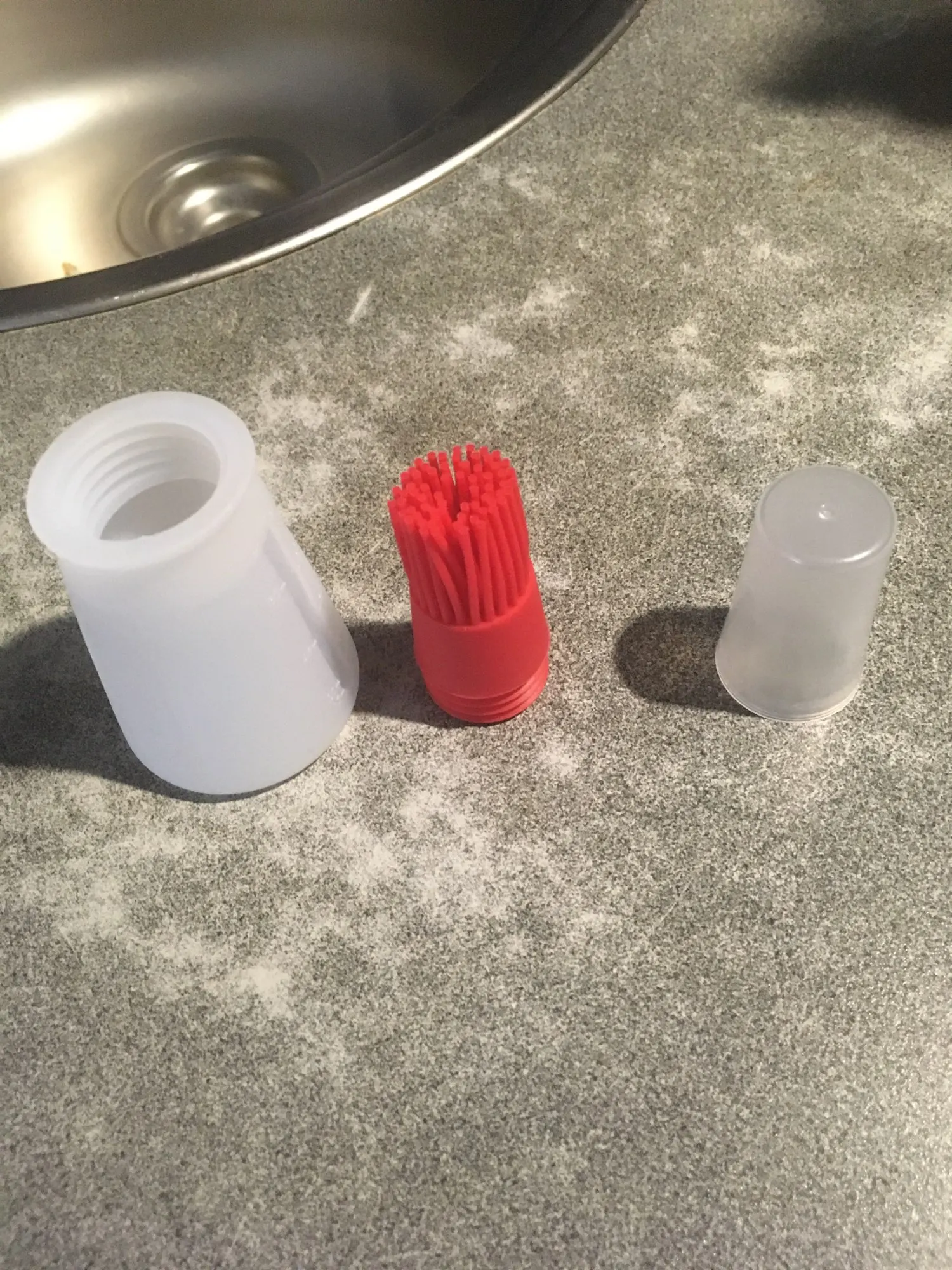 Кисточка для масла пришла быстро, сама бутылочка мягкая, кисточка силиконовая По опыту знаю : когда смазываете маслом противень или что-либо, не надо сильно надавливать на бутылочку, может выскочить кисточка и всё масло прольётся. Слегка надавить и смазать нужную поверхность. Удобно. Храню кисточку в холодильнике, чтобы масло не прогоркло.