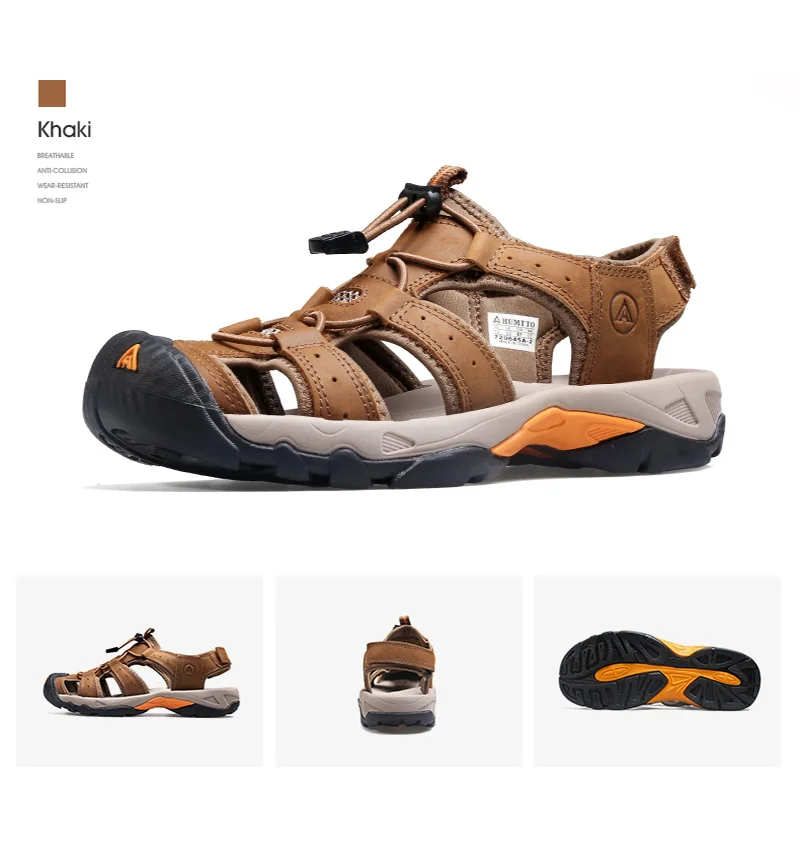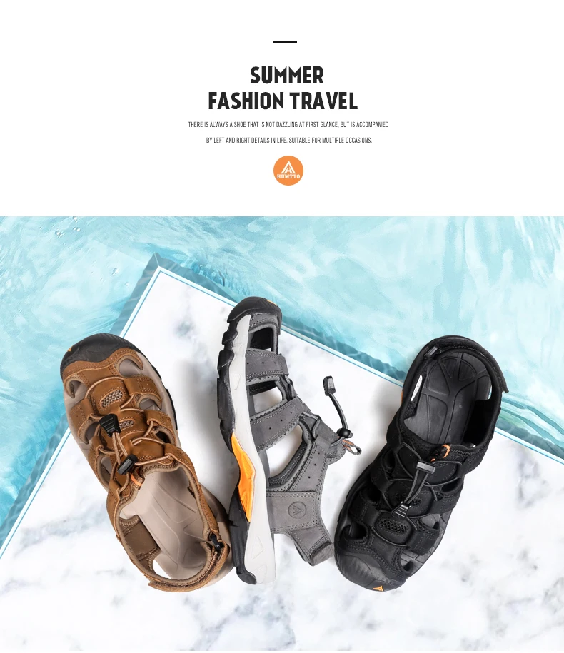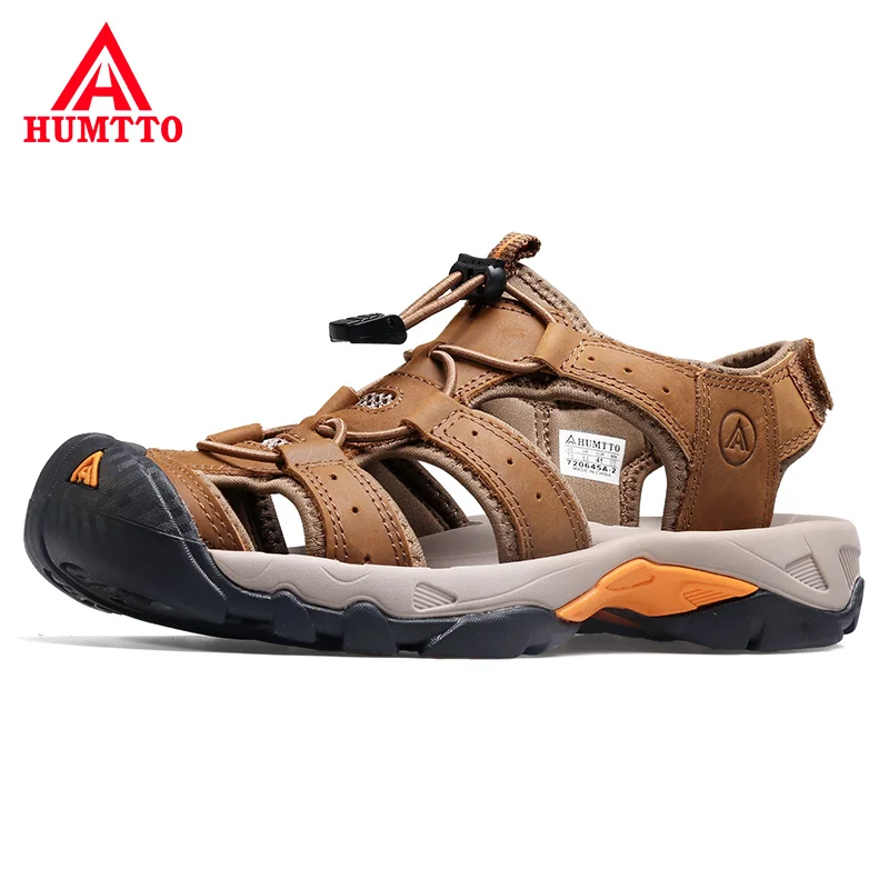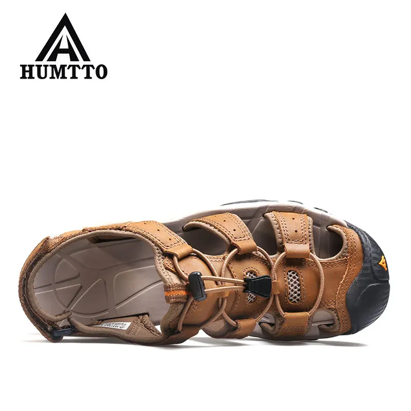 Мужские дышащие кожаные сандалии HUMTTO, летняя пляжная обувь для путешествий, Мужская обувь для отдыха на открытом воздухе, походов, рыбалки, альпинизма, акваботинки, 2021