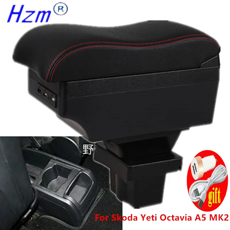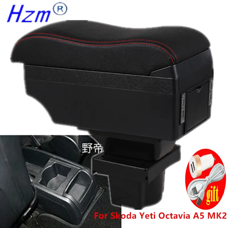 Для Skoda Yeti Octavia A5 MK2 2005-2012 подлокотник коробка двойной Слои из искусственной кожи центральной консоли ящик для хранения USB