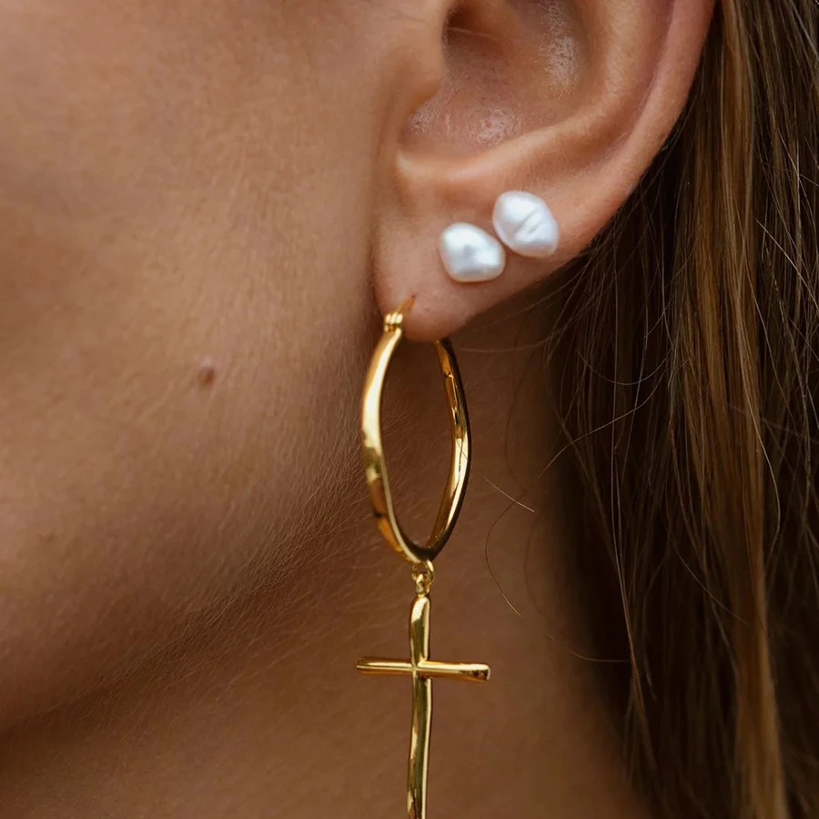 Серьги-кольца женские из нержавеющей стали, с натуральным пресновод...