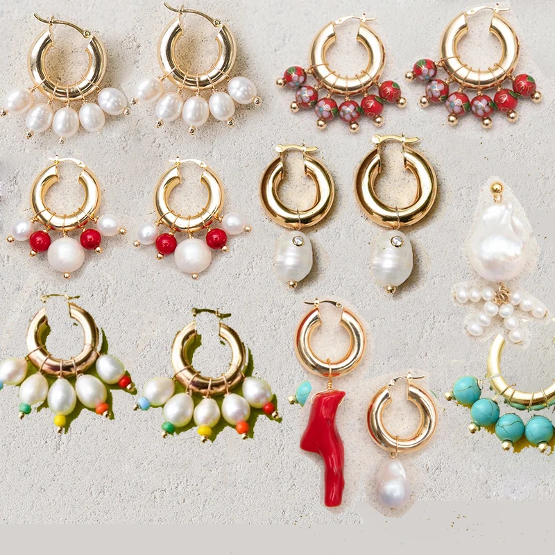 Модные ювелирные изделия, Пресноводный Жемчуг, красные лакированные акценты, серьги-кольца, женские серьги 2021 oorbellen voor vrouwen