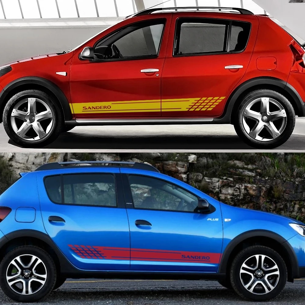 2 шт. стильные наклейки на дверь и боковую юбку автомобиля для Renault Sandero, декор кузова, длинные полосы, виниловая пленка, наклейки, аксессуары для тюнинга автомобиля