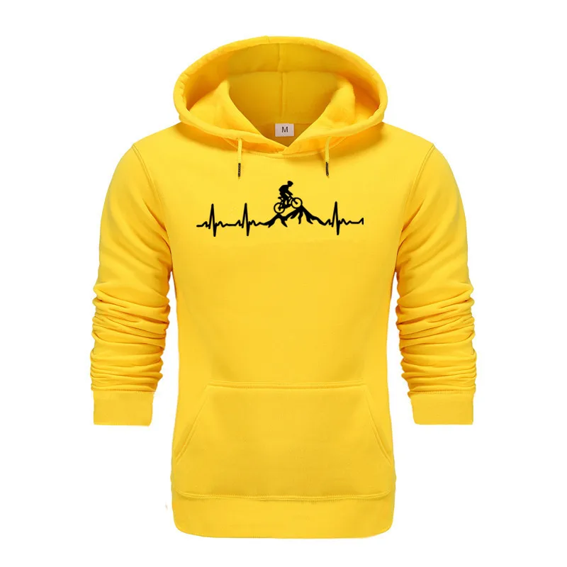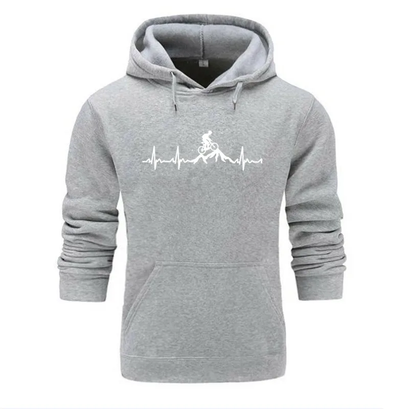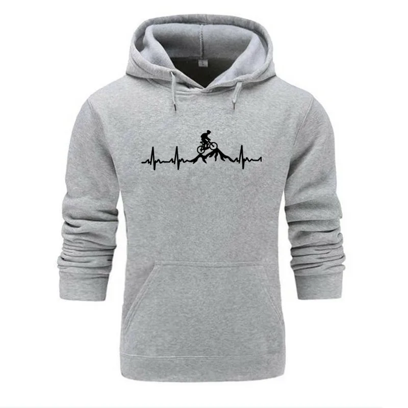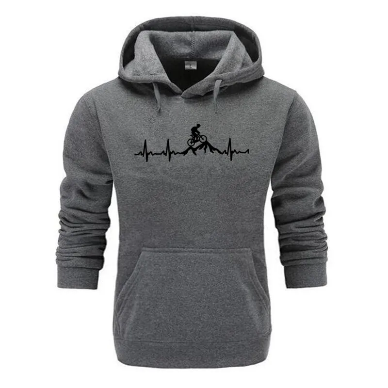 Толстовка мужская с капюшоном, Байкерский свитшот с рисунком сердцебиения и езды на горном велосипеде, забавная уличная одежда в стиле хип-хоп, брендовый Топ, Осень-зима