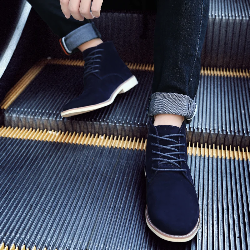 Ботинки Челси мужские, демисезонные, синие, с высоким берцем