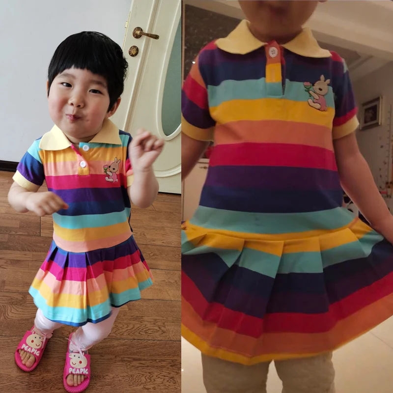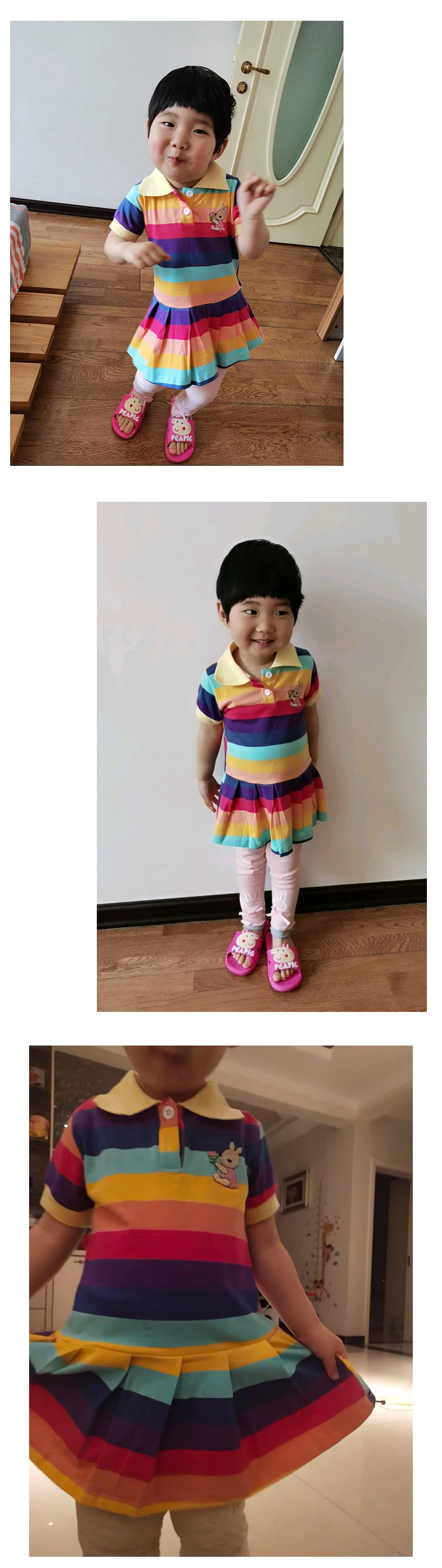 Солнечный свет девушки Радуга полосы поло короткое платье Дети Лето Повседневная одежда костюм Новые Девушки Дети Крутые поло рубашки платья
