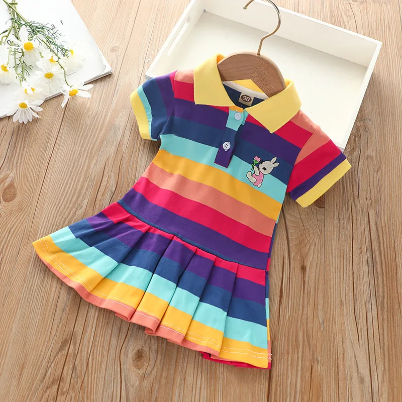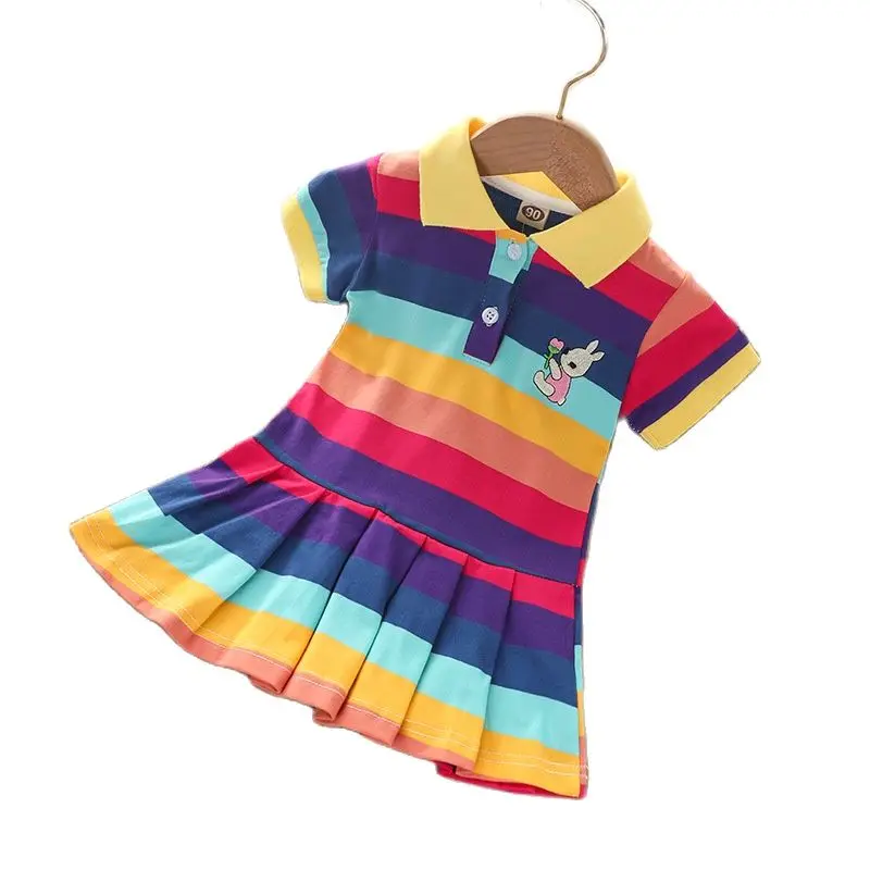 Короткое платье-поло в радужную полоску для девочек Sunshine, Детская летняя повседневная одежда, костюм, новые классные детские платья-поло для девочек