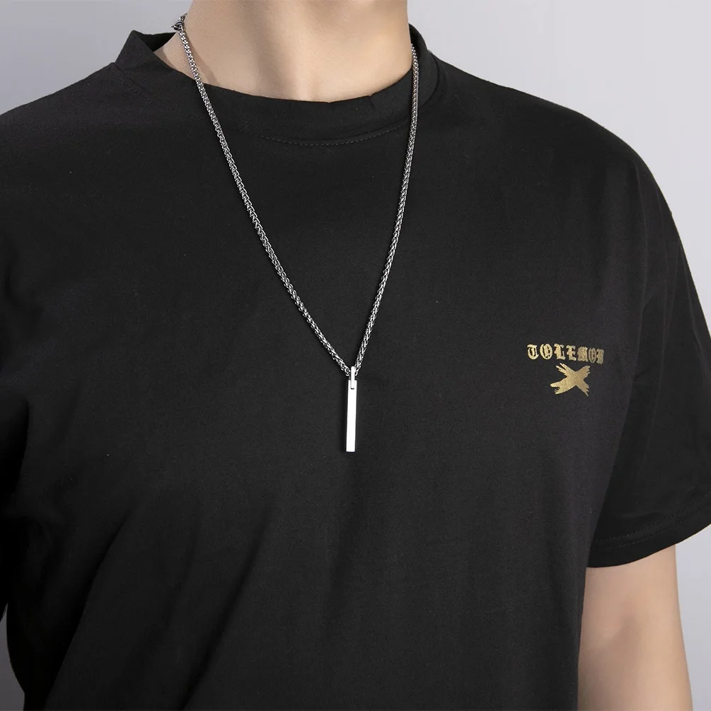 Ожерелье для мужчин, длинная цепочка из нержавеющей стали, цвет черный, синий, серебристый, подвеска из вольфрама
