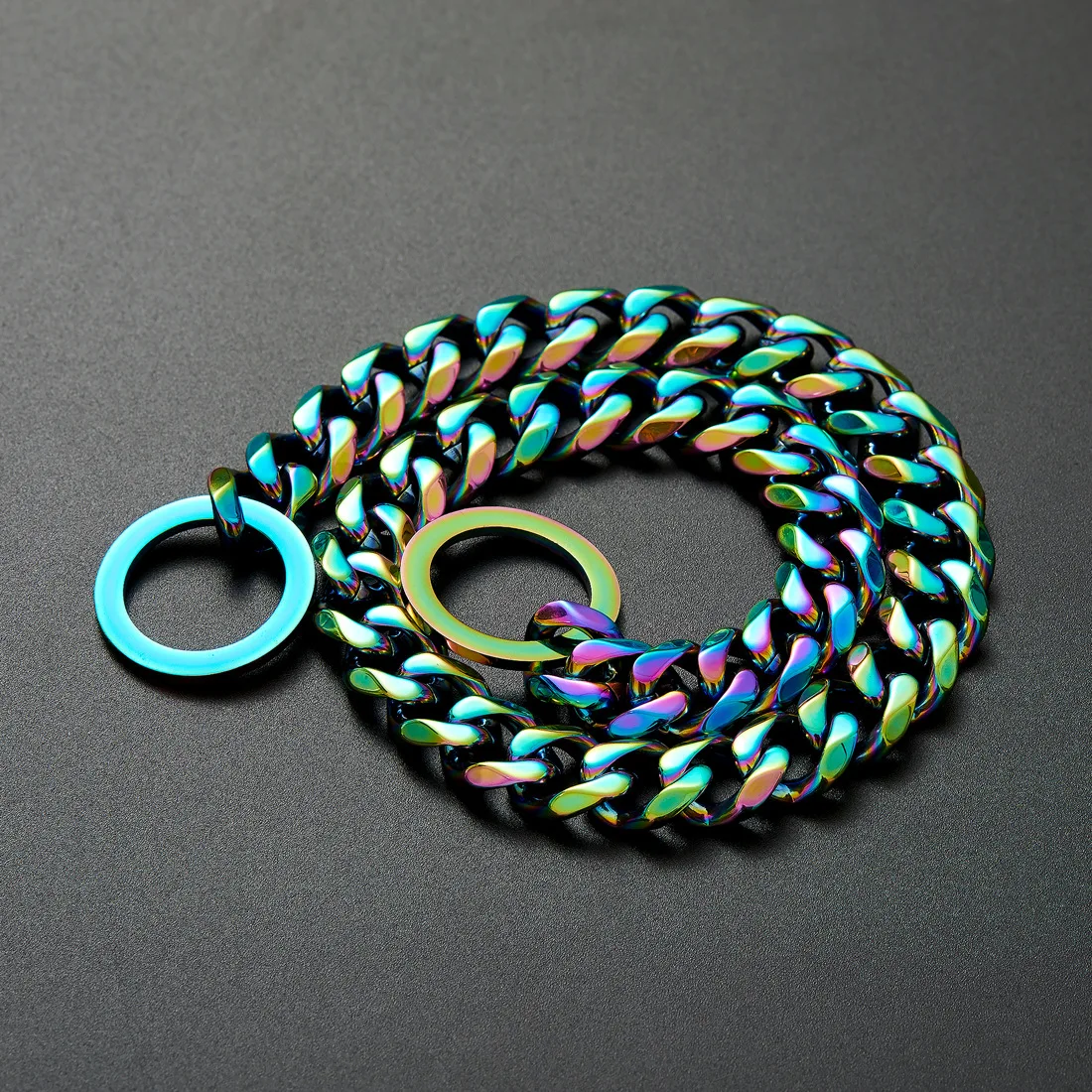 Цепь из нержавеющей стали с титановым покрытием для крупных собак, прочный ошейник с цветным гальваническим покрытием для питбуля, добермана, ширина 1519 мм