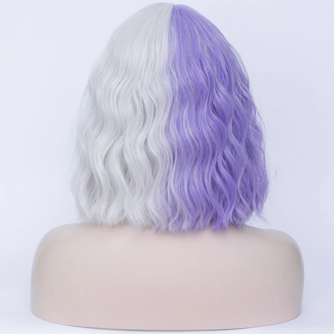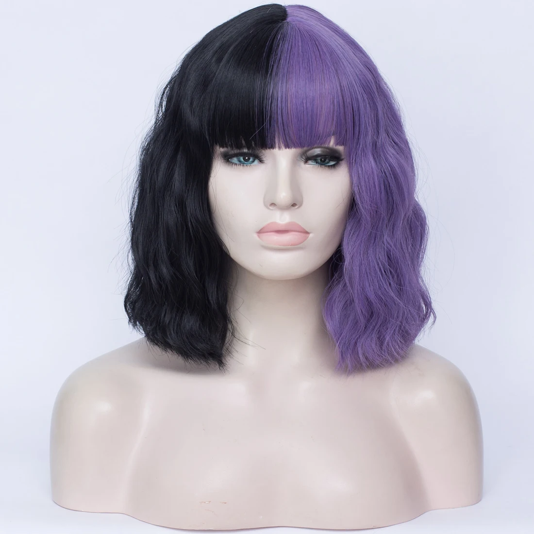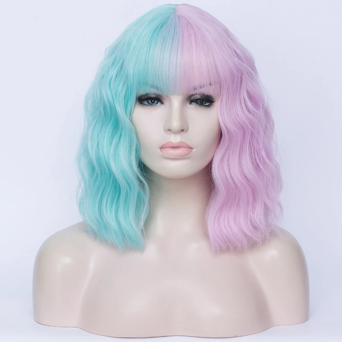 Similler женские короткие вьющиеся синтетические парики боб с челкой пэчворк фиолетовые синие розовые черные фотообои для Хэллоуина