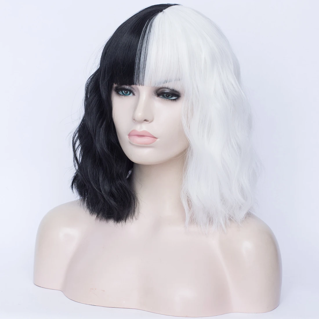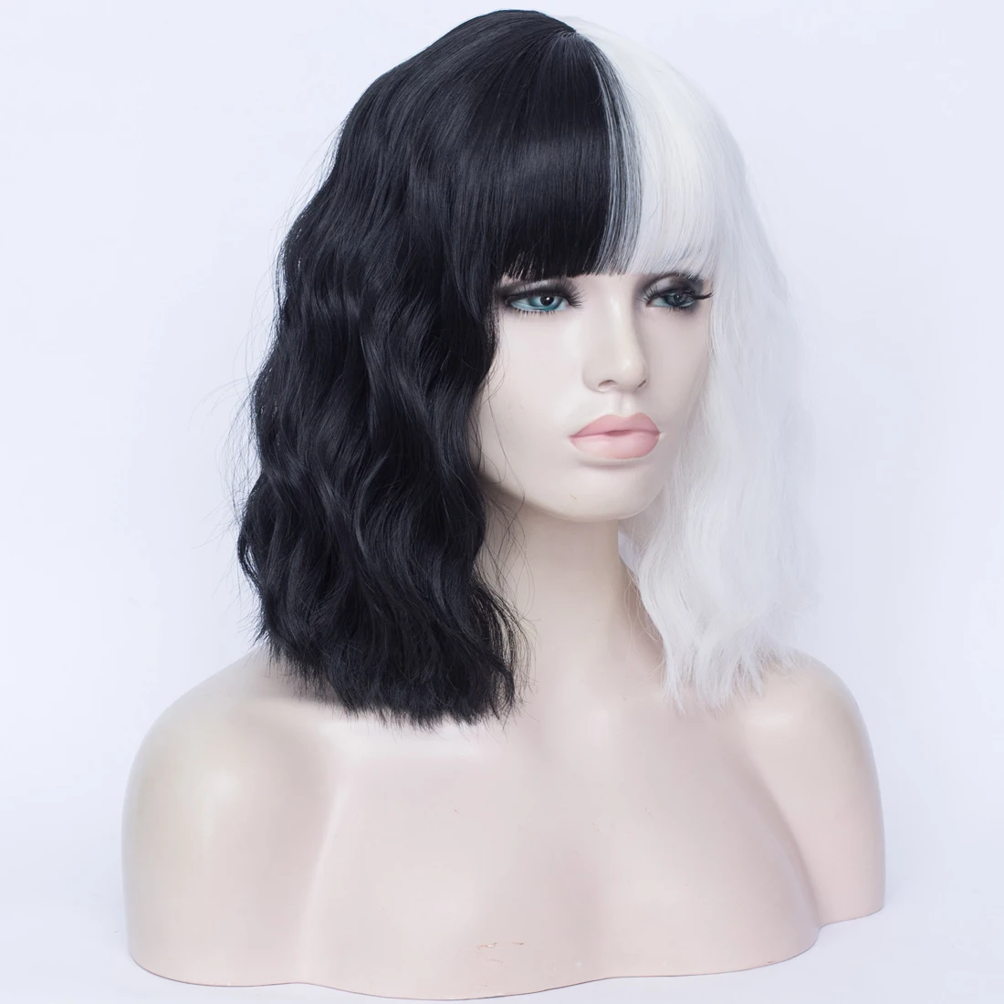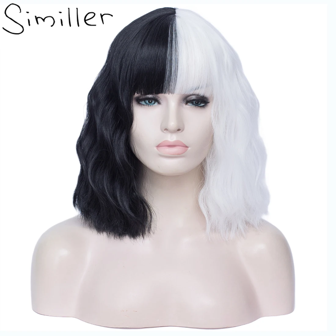 Similler женские короткие вьющиеся синтетические парики боб с челкой пэчворк фиолетовые синие розовые черные фотообои для Хэллоуина