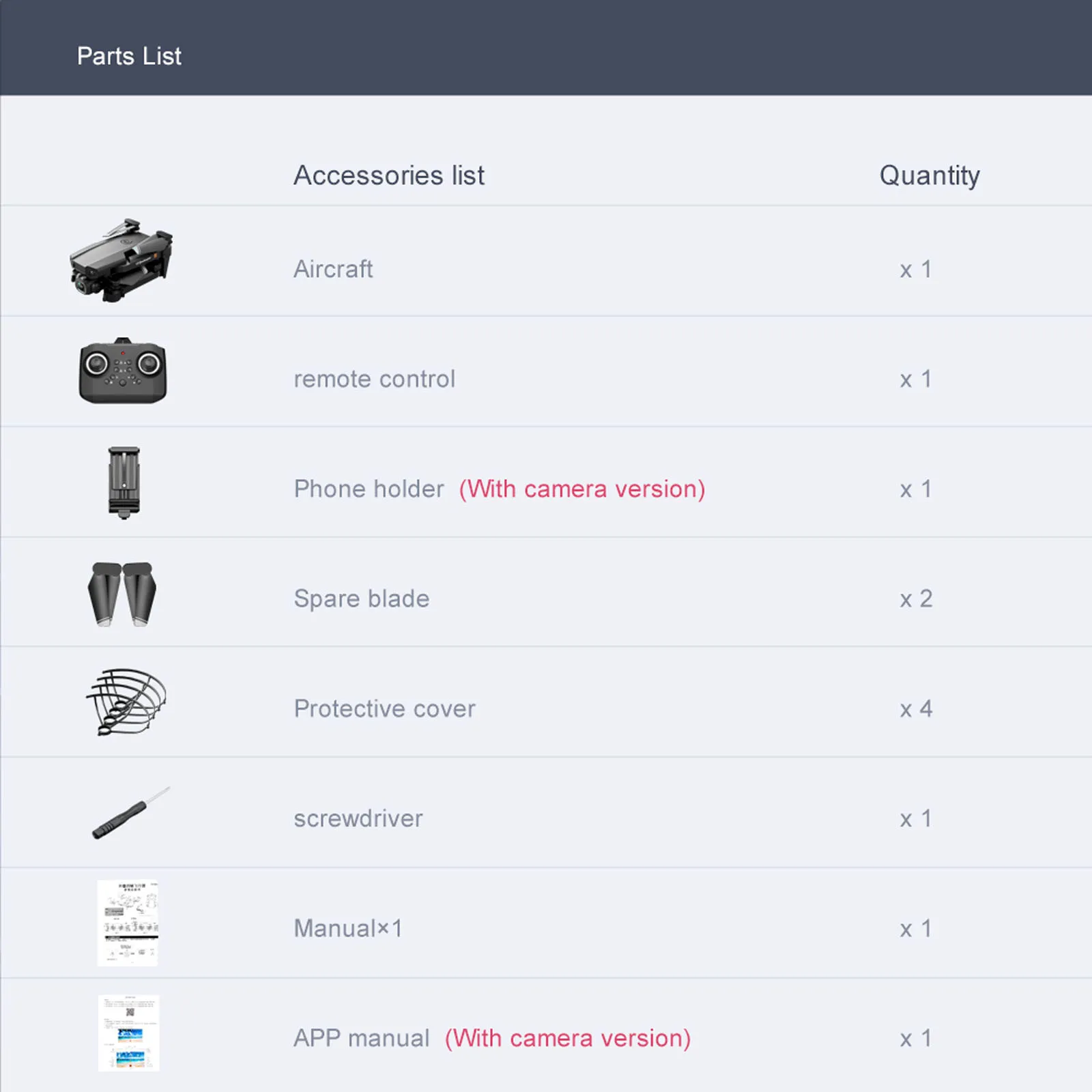 Функции: вверх/вниз, вперед/назад, влево/вправо, боковой полет, светодиодный Светильник, Безголовый режим, автоматическая кнопка возврата, режим удержания высоты, Поворот на 360 °, WiFi FPV