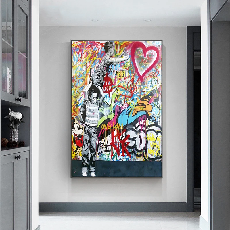 Бэнкси уличное искусство Граффити любовь мальчик и девочка Холст Картина Куадрос плакаты и печать настенное искусство для гостиной домашний декор