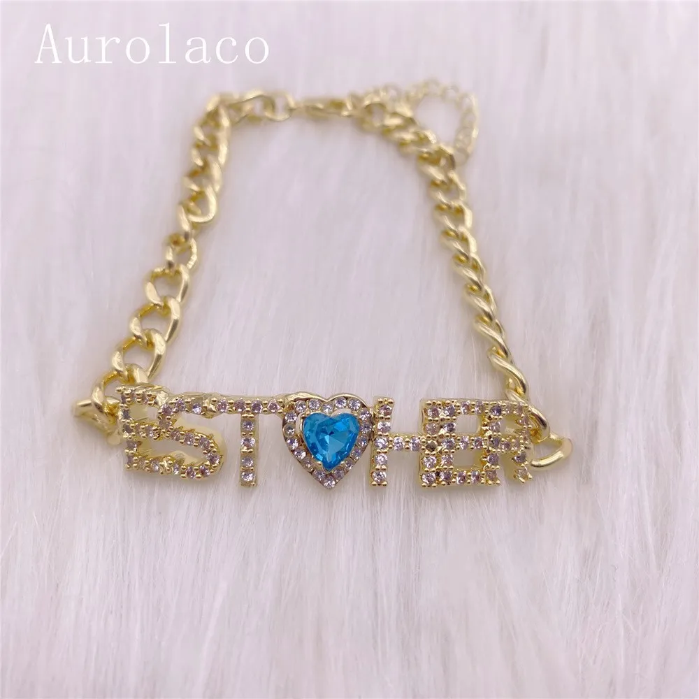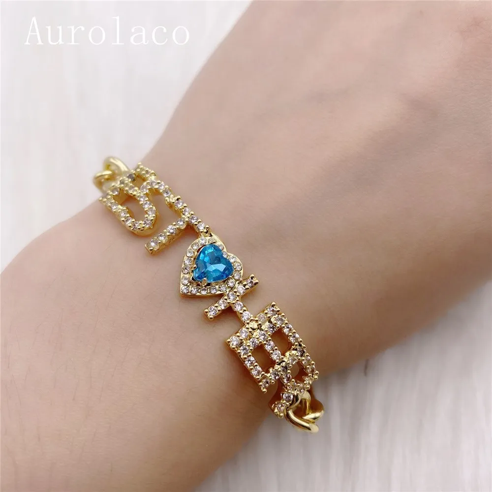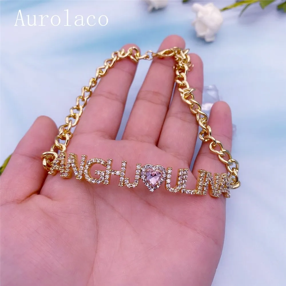 AurolaCo на заказ циркониевая цепочка название браслеты название браслет из нержавеющей стали циркониевая цепочка название браслет для женщин Подарки
