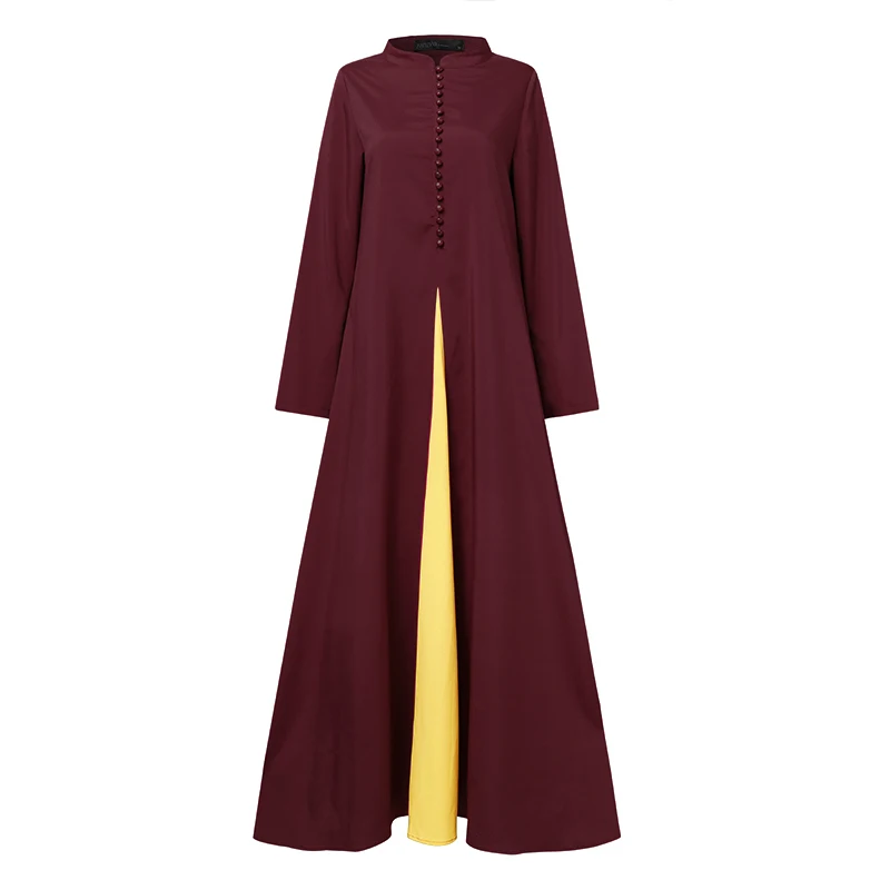 Посылка входит: 1 платьеМатериал: 95% полиэстер + 5% спандексЦвета: черный, винный, синийРазмер: S,M,L,XL,2XL,Длина рукава: полный рукавВырез: воротник-стойкаРисунок: однотонный, контрастный цветДлина: до щиколоткиПряжка-цепочка: пуговица спередиТолщина: тонкаяОсобенности: платье с контрастной строчкойСтиль: Досуг, богемное, ретро, Европа, мусульманское платье Абая кафтан, туника-кафтанСезон: весна, лето, осень, зимаПовод: семья вечерние, пляж, свадьба, праздник, работа