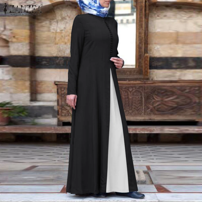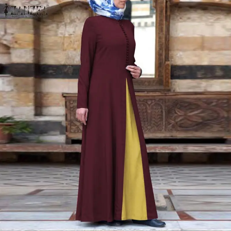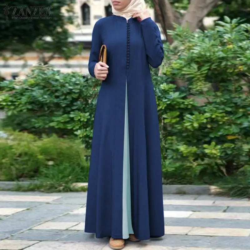 Женское весеннее мусульманское платье ZANZEA, кафтан, плиссированное платье 2022, абайя, Марокканское длинное платье, повседневное длинное платье макси с круглым вырезом, халат S