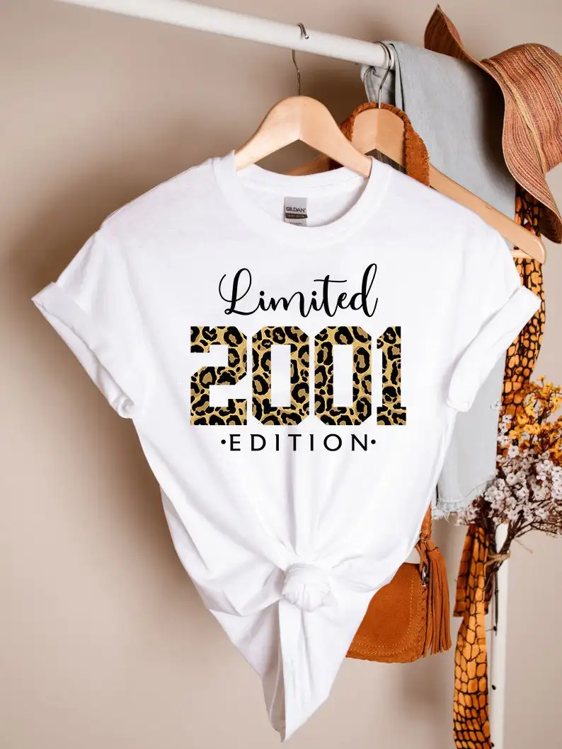 Рубашка женская, винтажная, ограниченная серия, подарок на 20-й день рождения, Леопардовый принт, 2001, 2001 хлопок, T-shirt100