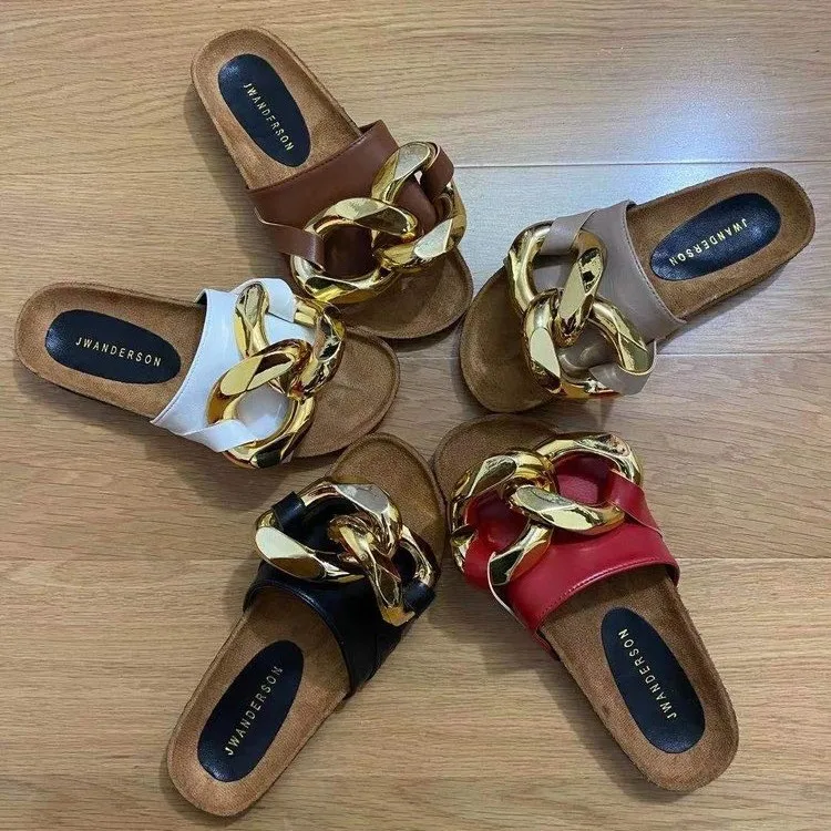 Женские шлепанцы LLOGAI, с металлической Закруткой, лето 2021, новинка, женские пляжные сандалии с открытым носком, большие размеры, плоские сандалии женские