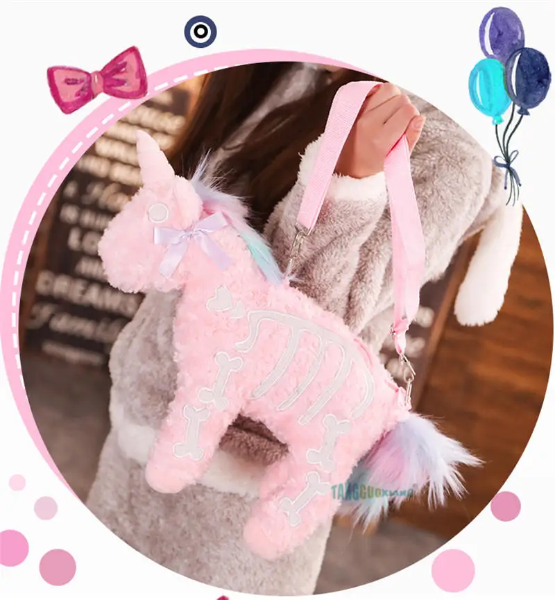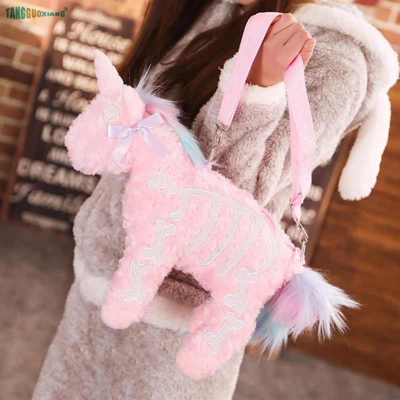 Милый плюшевый рюкзак с изображением мультяшного скелета единорога ...