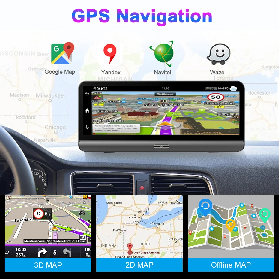 Загрузите ваш любимый GPS на внутреннюю память с дополнительной GPS-антенной этот Видеорегистратор обеспечивает наилучший опыт независимо от места назначения. И, это функция сети 3G/4G, помогает dvr получить более быструю и плавную онлайн-навигацию GPS.