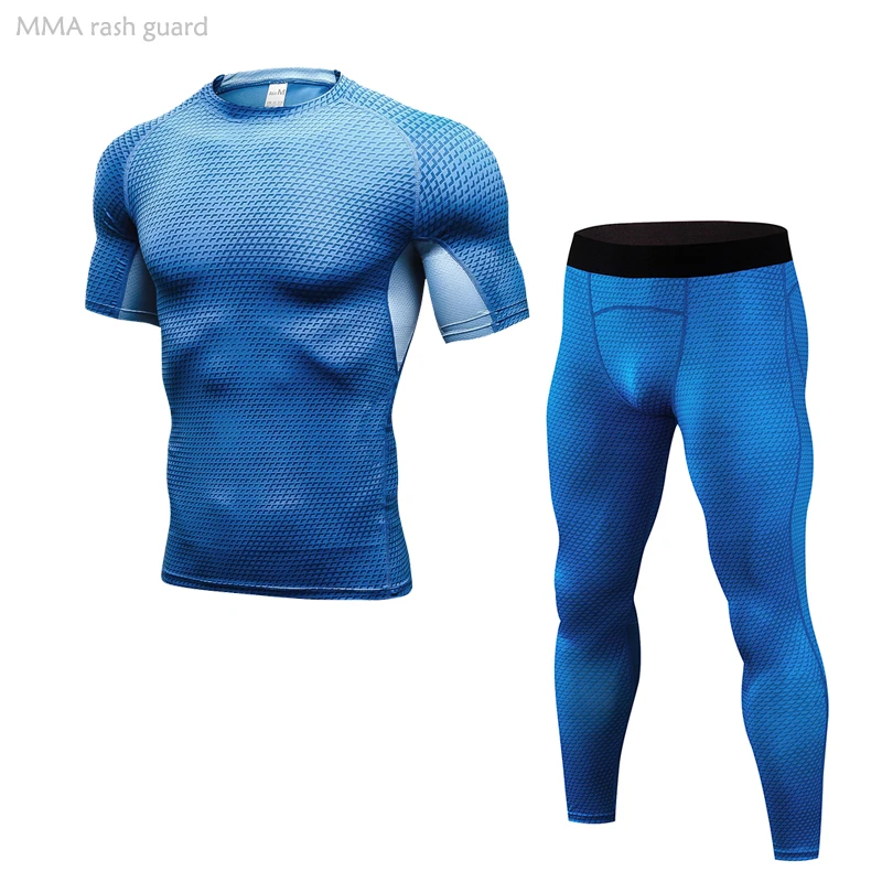 Летние рубашки с коротким рукавом Леггинсы Мужская одежда для фитнеса или бодибилдинга плотно прилегает к телу и футболки на осень спортивные быстросохнущие спортивные тренировочные костюмы, комплект