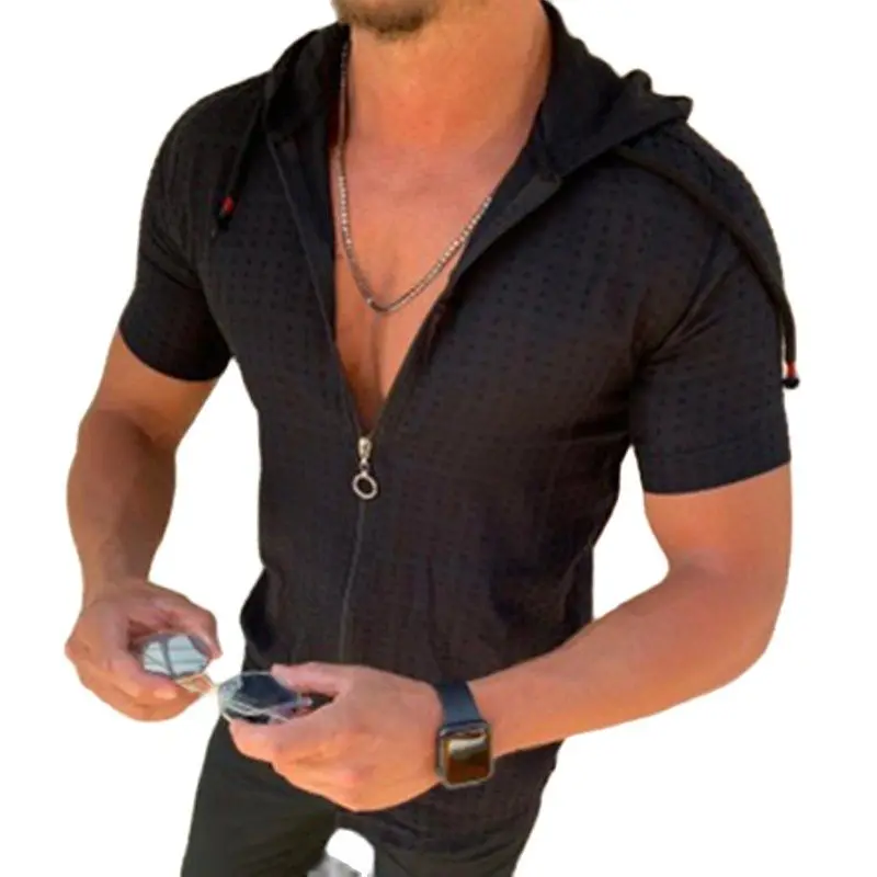 Удобная популярная летняя футболка на молнии с капюшоном, Мужская ф...