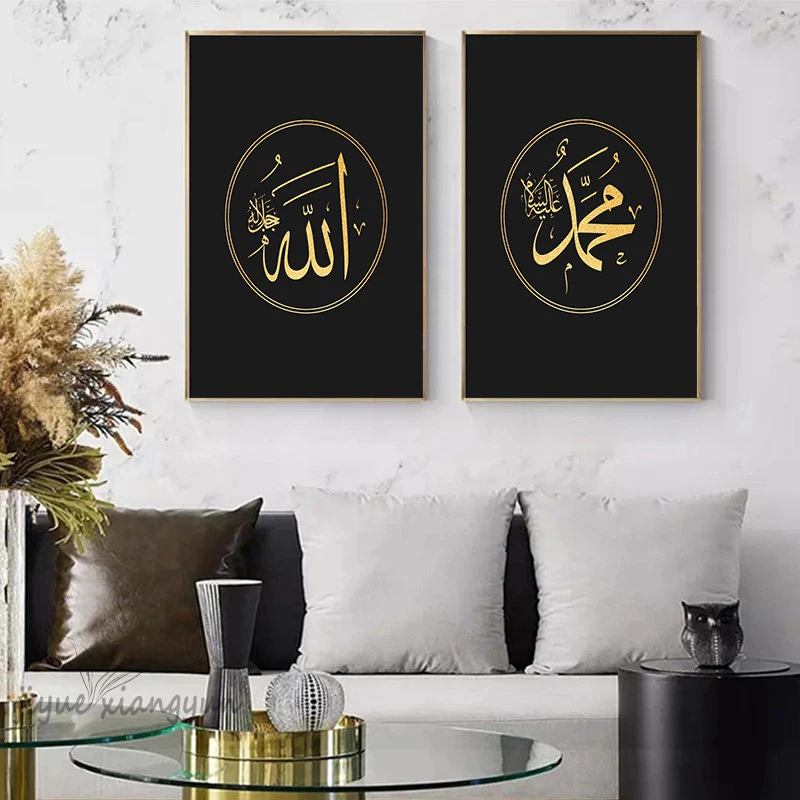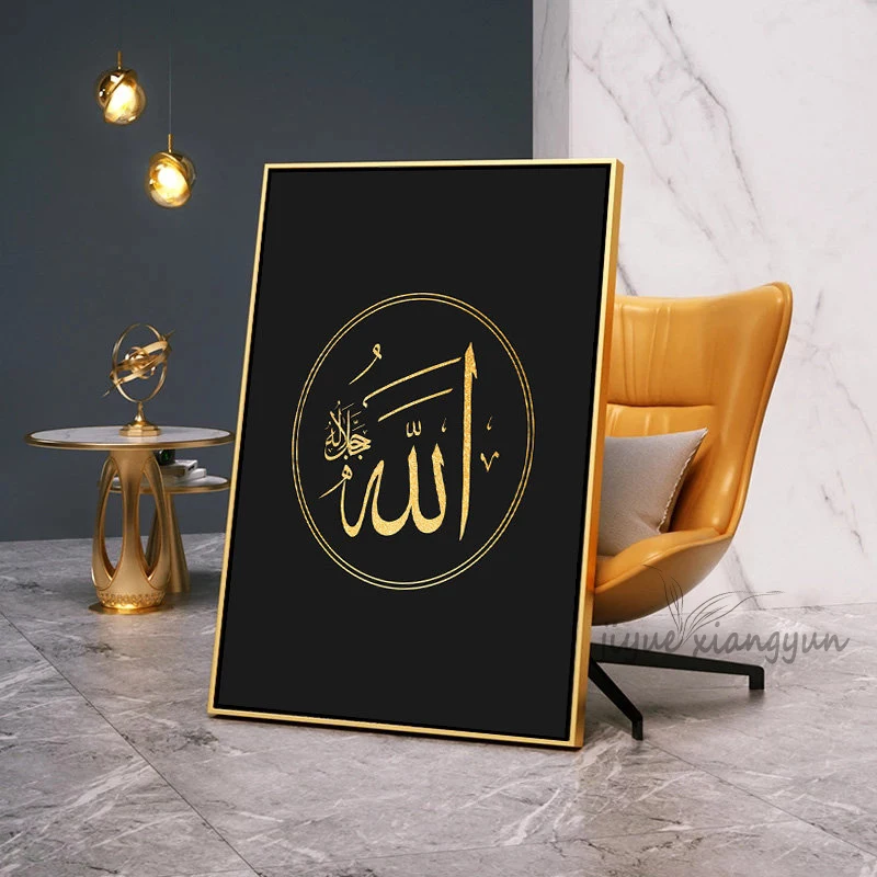 Золотые перья, холст, живопись, мусульманская стена, искусство, HD печать, плакат, арабская каллиграфия, живопись, гостиная, мусульманское украшение