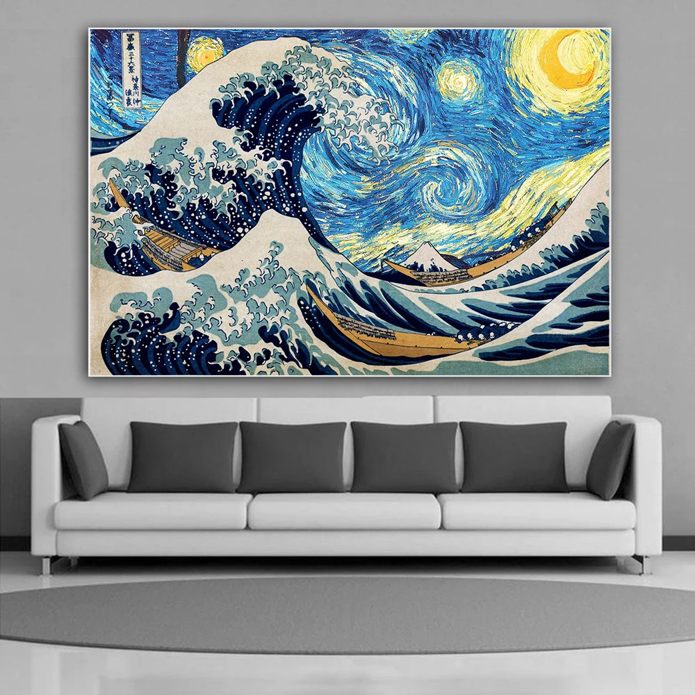 Картины на холсте великая волна канагава, картины на стене, классические известные картины Морского Пейзажа, картины